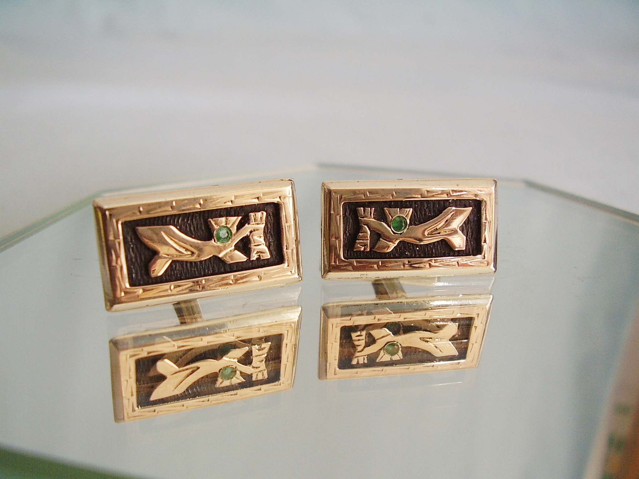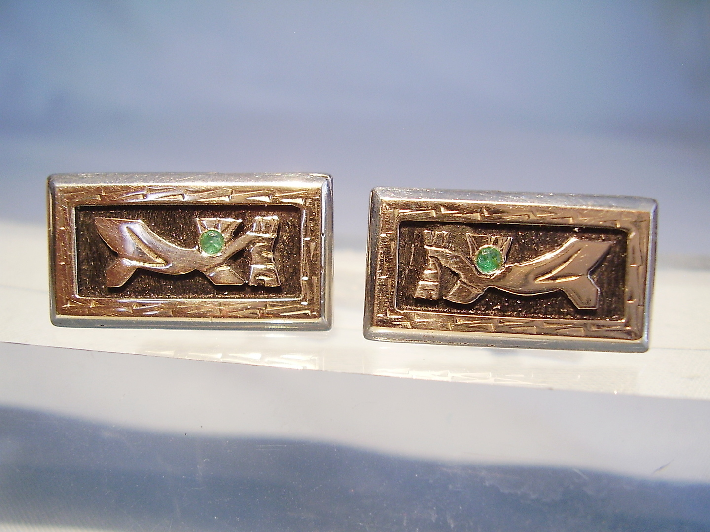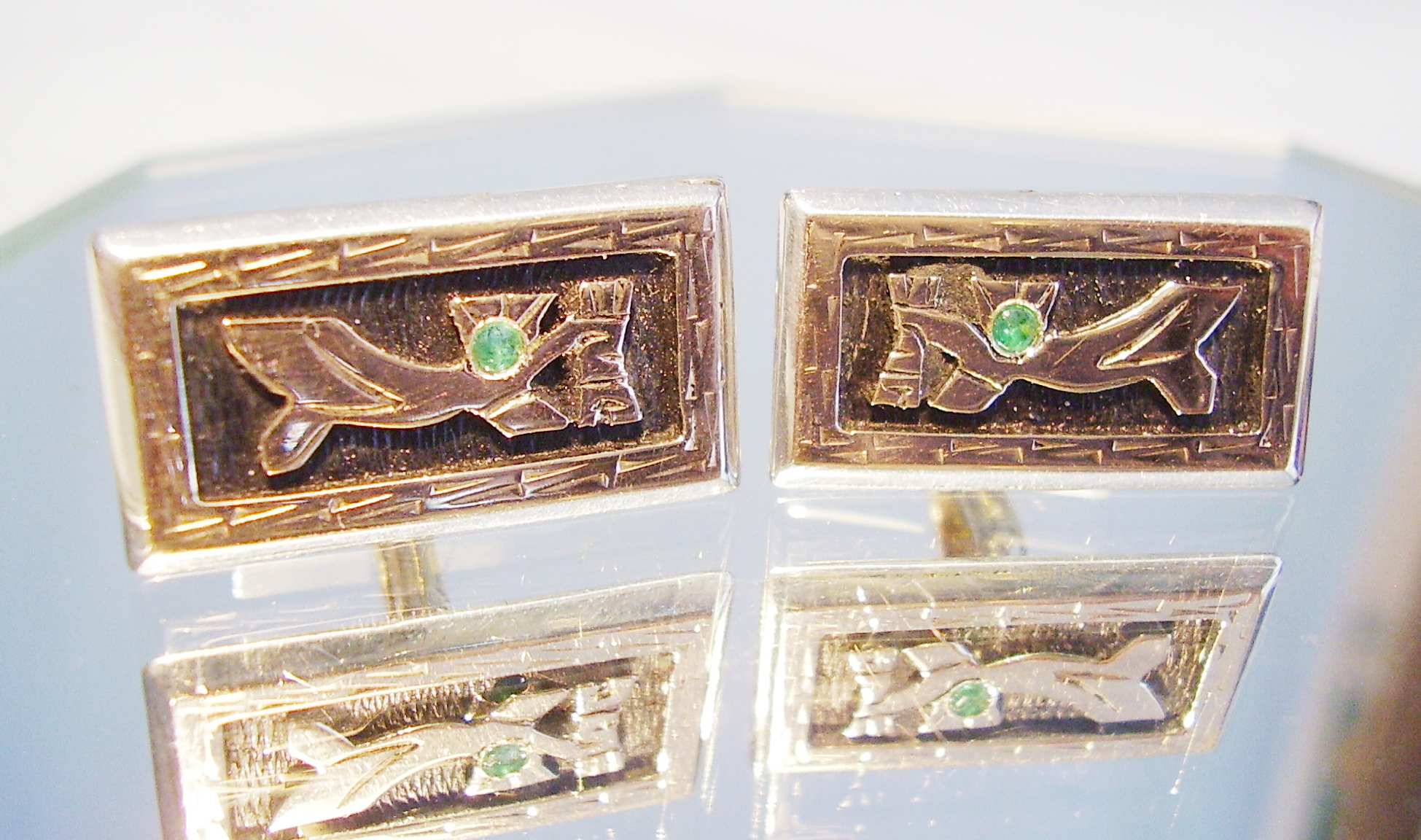 357635. DESIGNER MANSCHETTKNAPPAR MED RIKTIGA SMARAGDER.