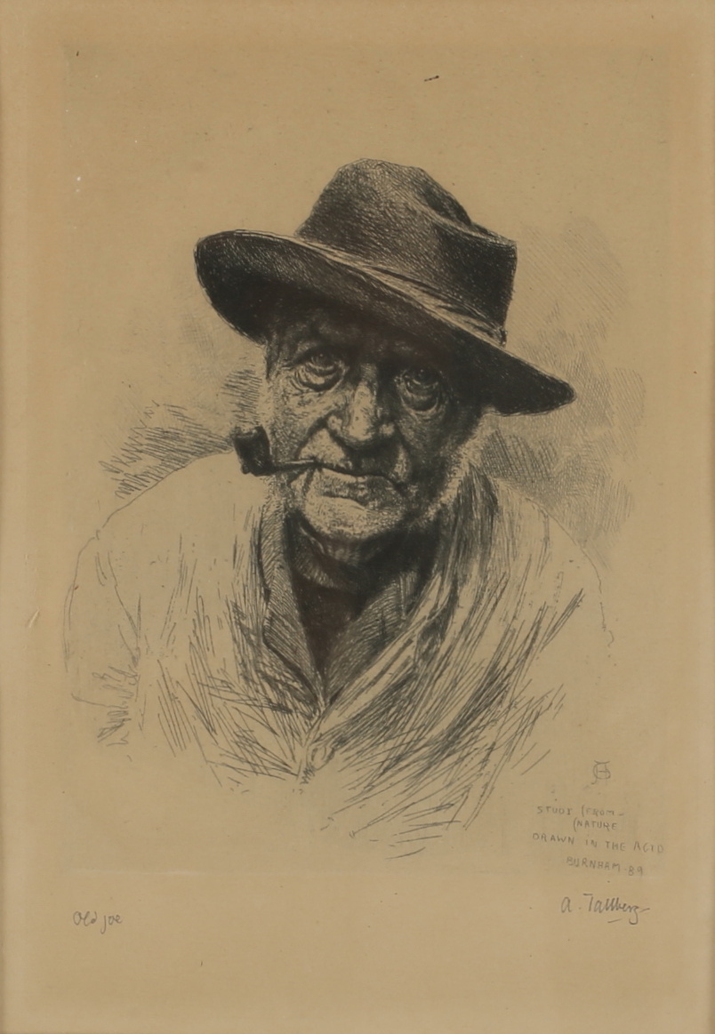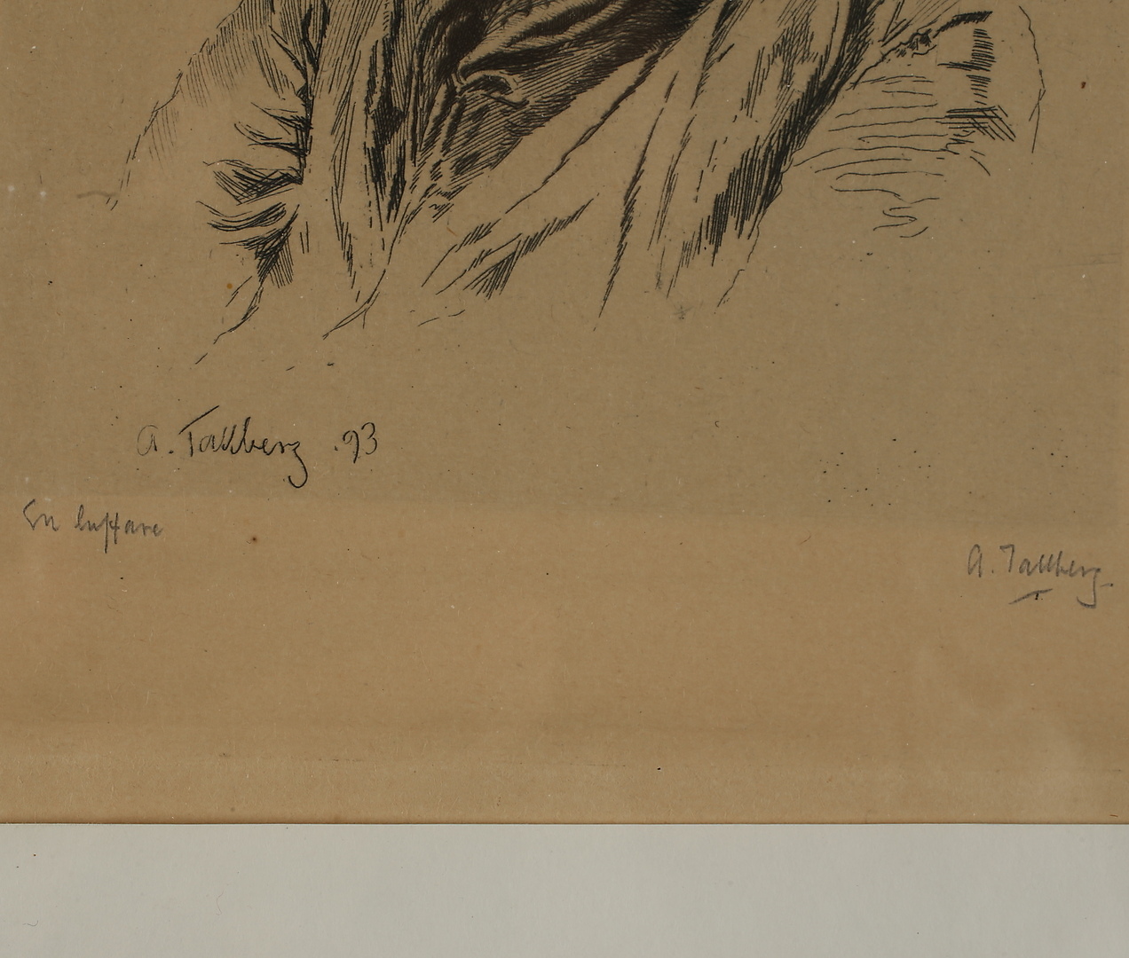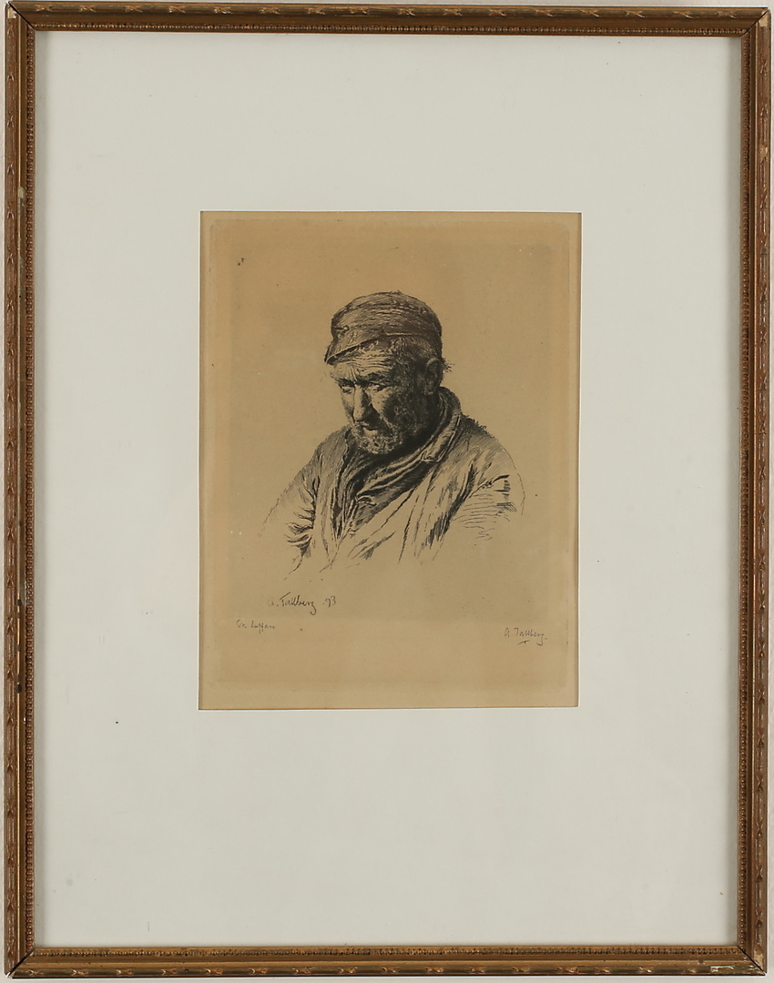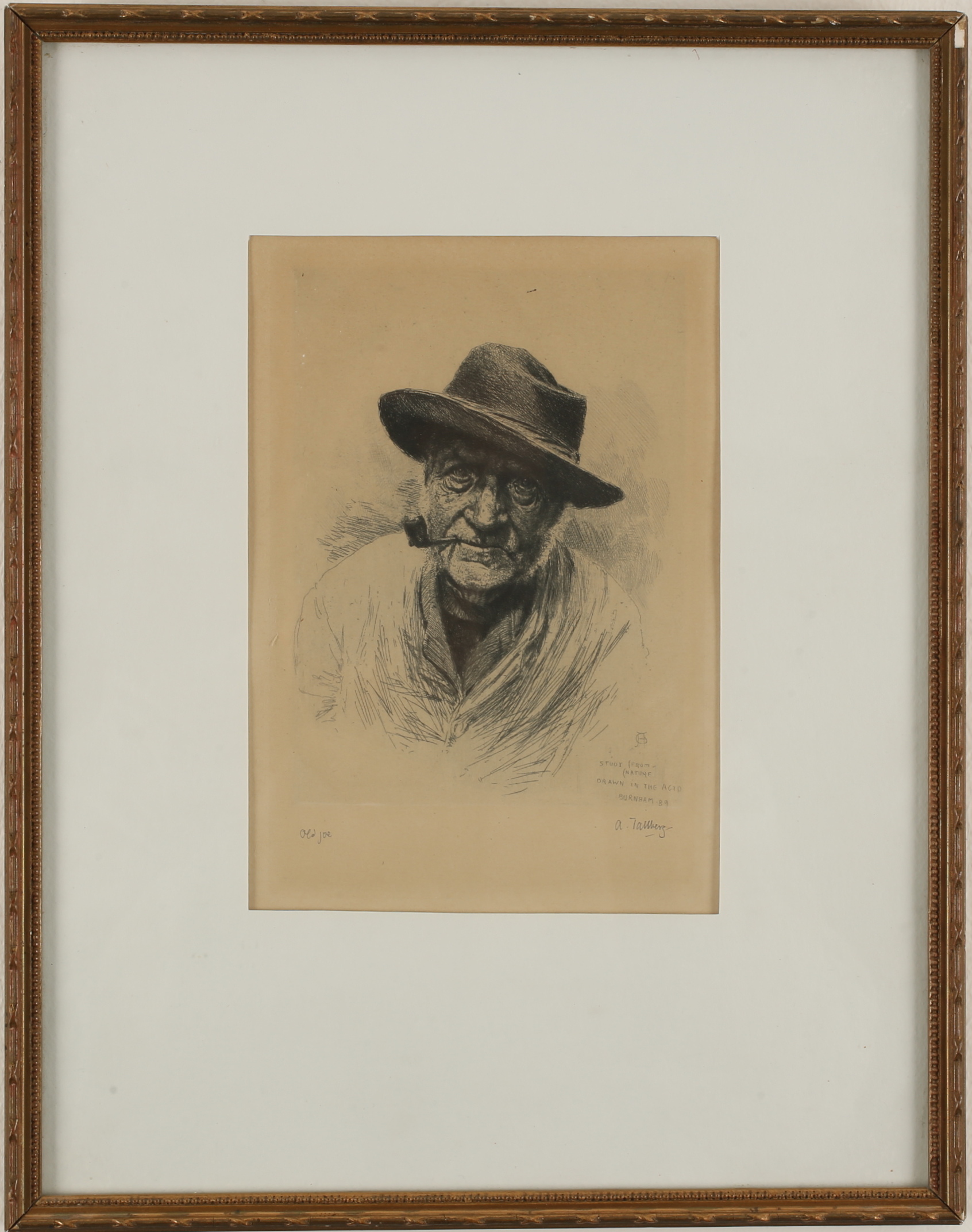 357682. AXEL TALLBERG. etsningar, 2 st. "old joe", "en luffare".