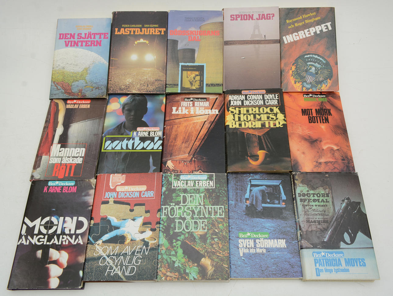 28 st deckare från Bra böcker förlaget såsom Sherlock Holmes, Dubbelstöten, H Hjuler, V Erben, J Carr och K Arne Blom m. fl.