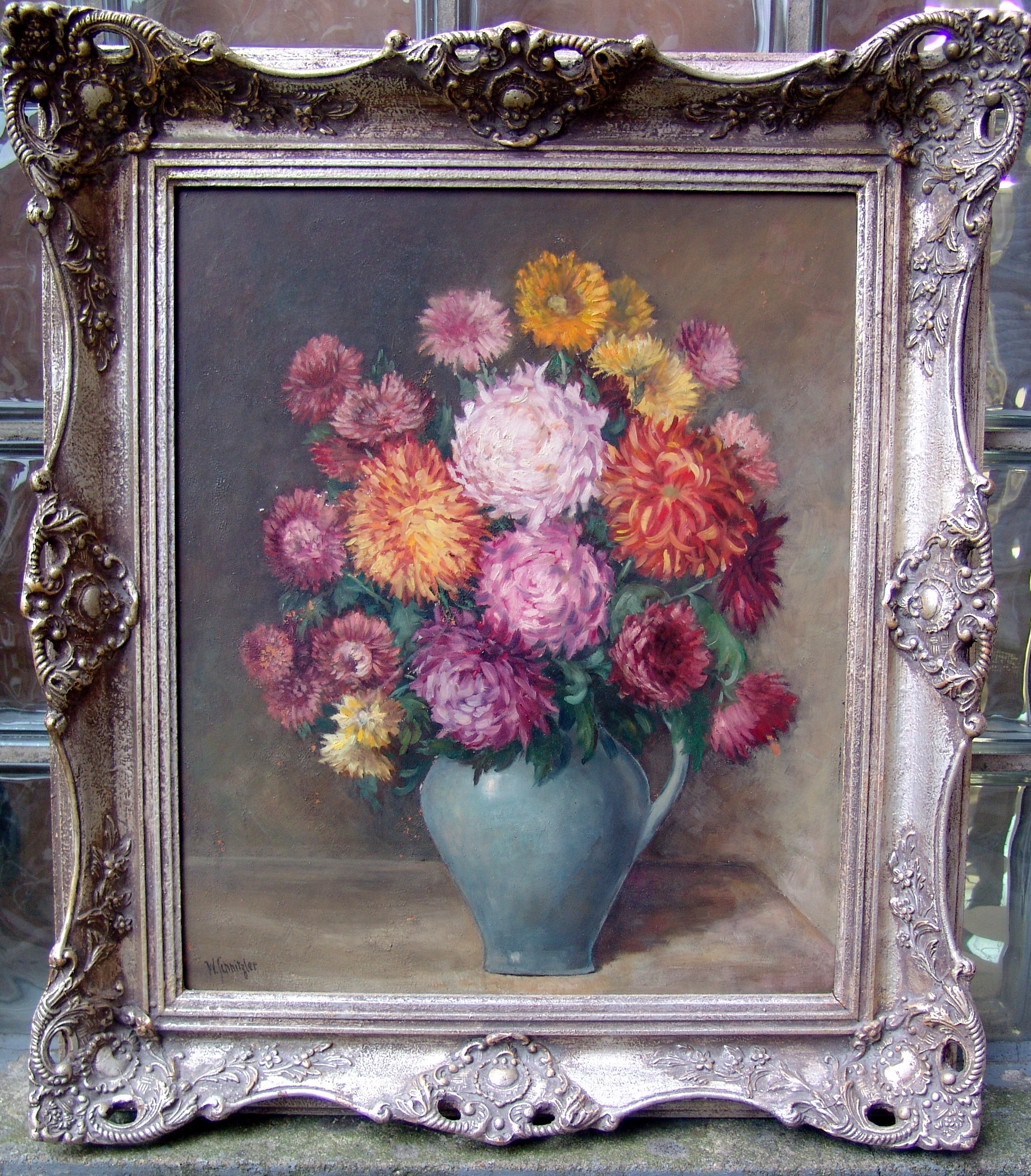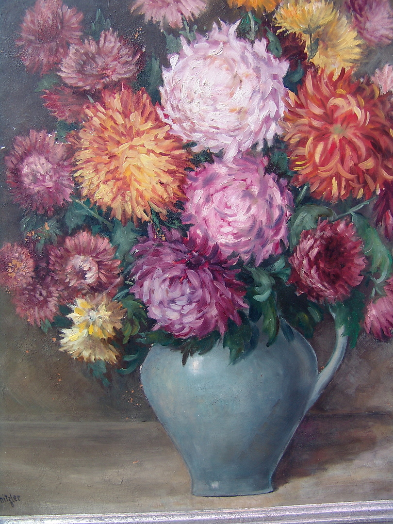 357754. KÜNSTLER UNBEKANNT. Stilleben av blommor med Dalia.