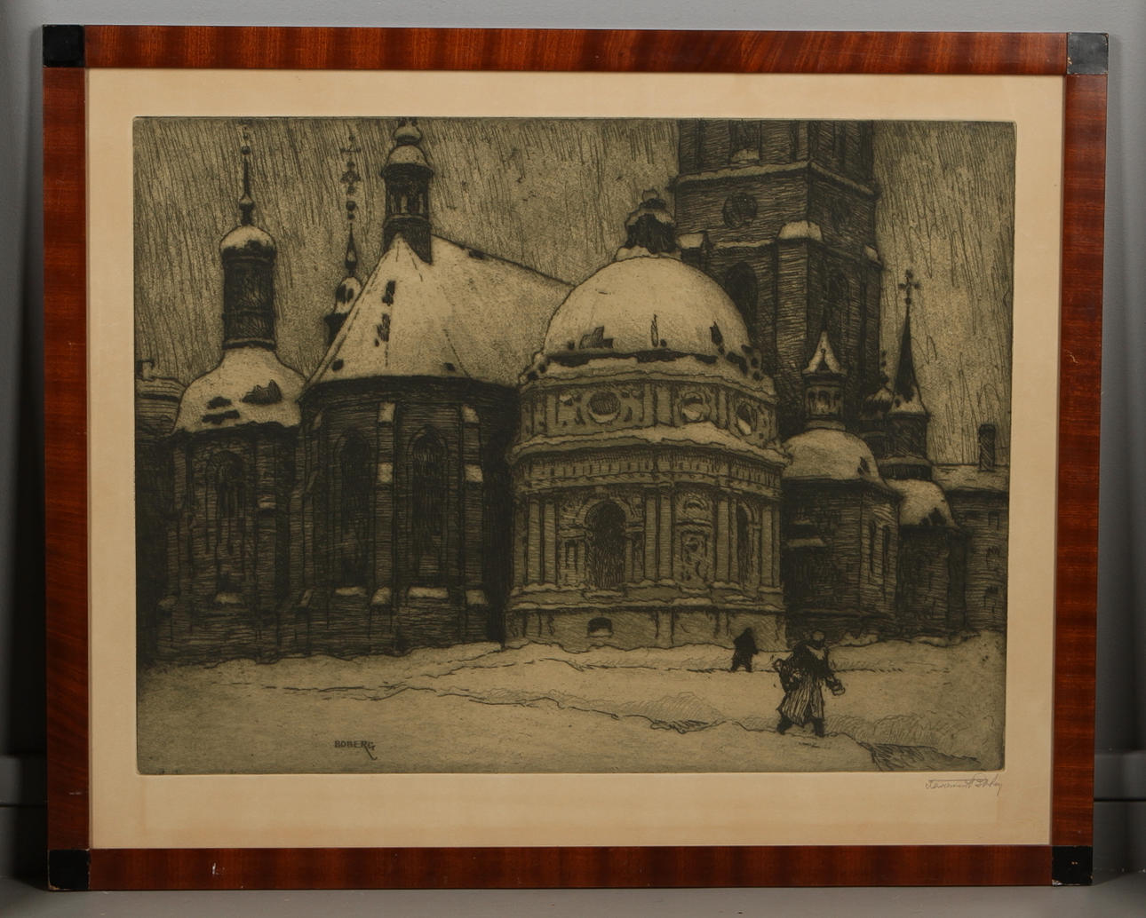 35790. FERDINAND BOBERG. Riddarholmskyrkan, etsning, signerad.