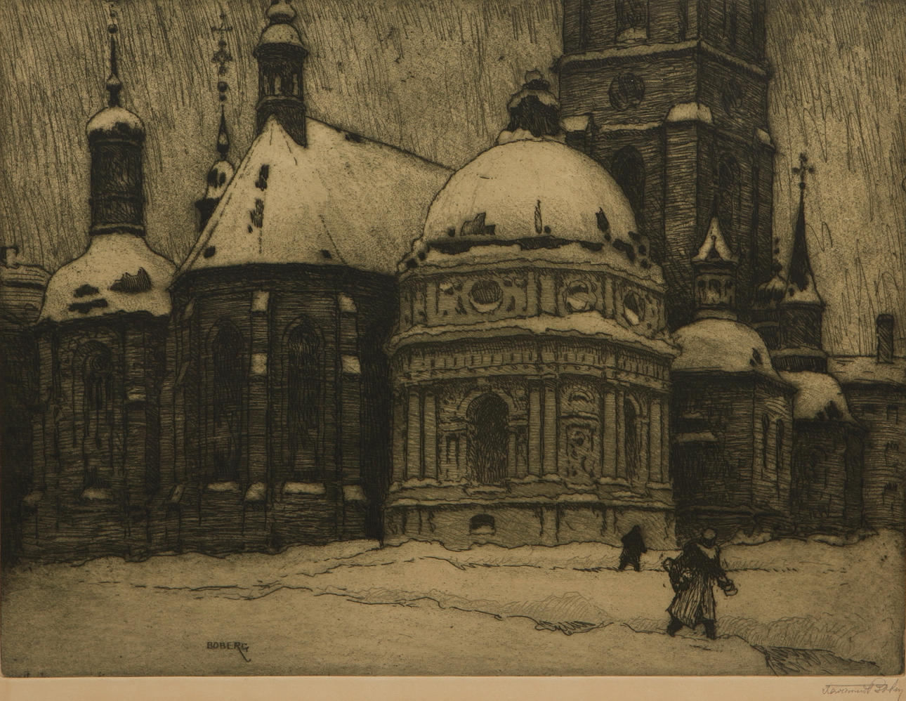 FERDINAND BOBERG. Riddarholmskyrkan, etsning, signerad.