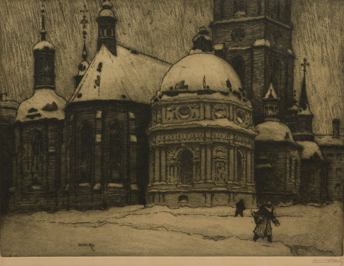35790. FERDINAND BOBERG. Riddarholmskyrkan, etsning, signerad.