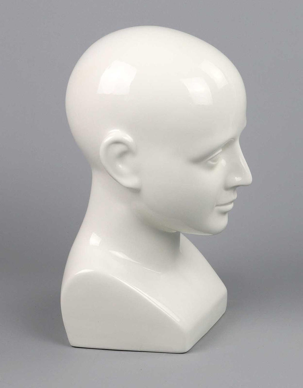 vitglaserat porslin, omärkt. naturalistisk form av ett huvud, H ca. 30 cm, brännspricka orsakad av tillverkning på undersidan.