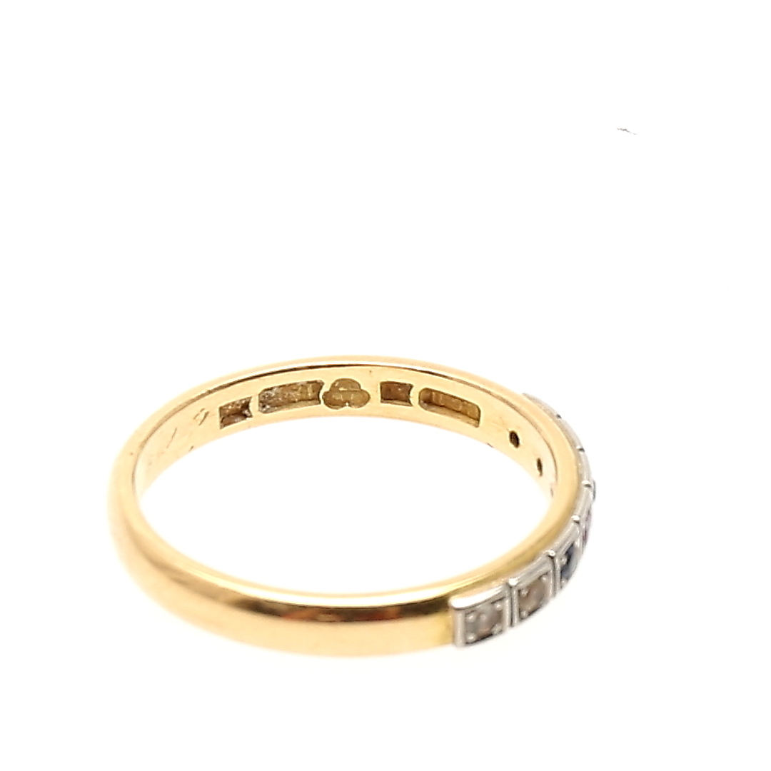 358085. RING med 7 stenar i 18K gulguld, totalvikt 4,65 gram.