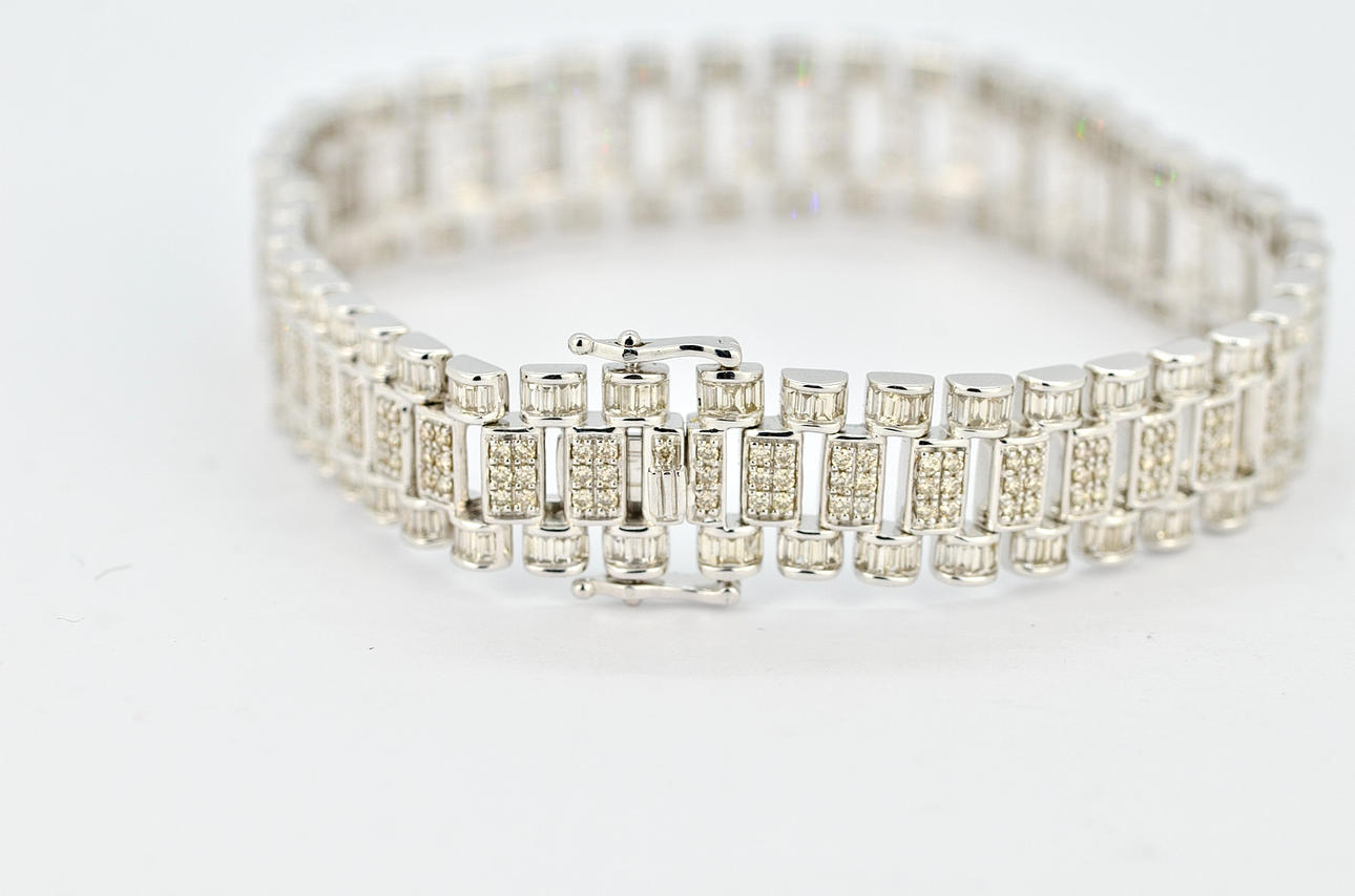 3584436. 9CT VITT GULD ROLEX STIL DIAMANT ARMBAND.