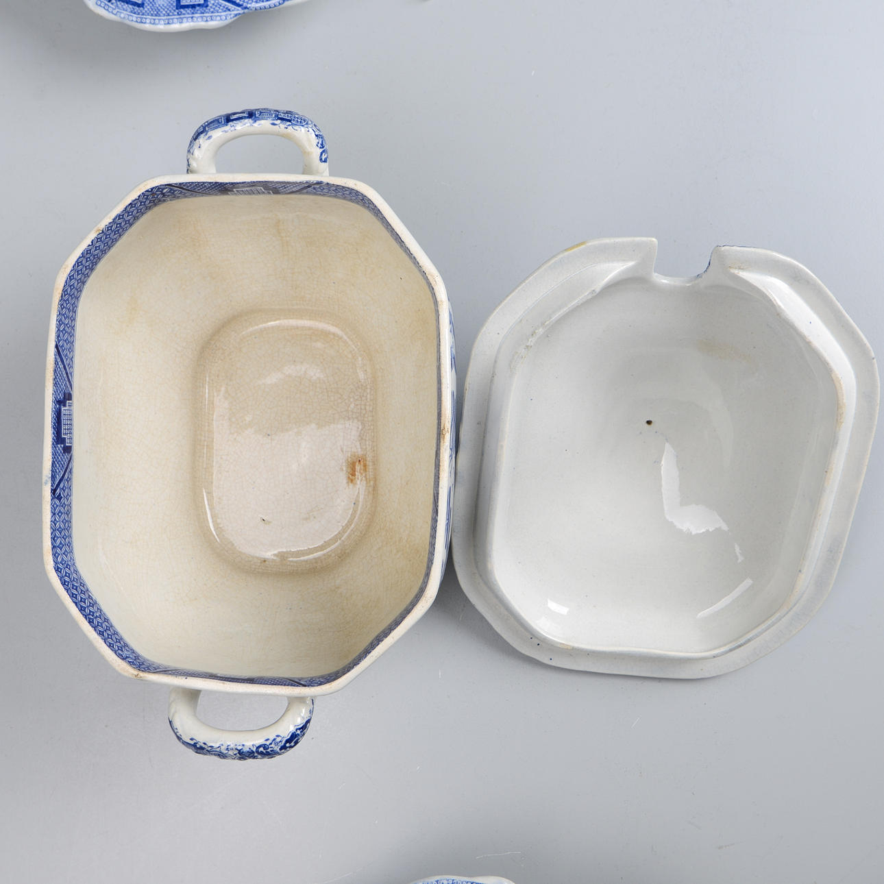 Flertal delar omärkta. Några märkta Staffordshire, England. Krackelyr på vissa delar. Enstaka nagg kan förekomma.