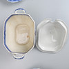 8 mattallrikar, 4 serveringsfat i olika storlekar, 3 terriner med lock.