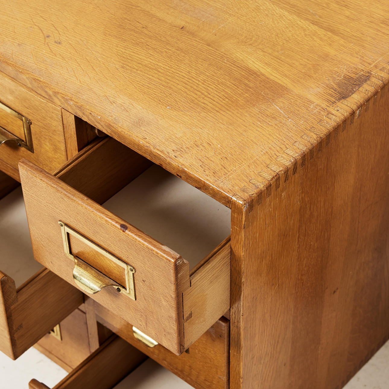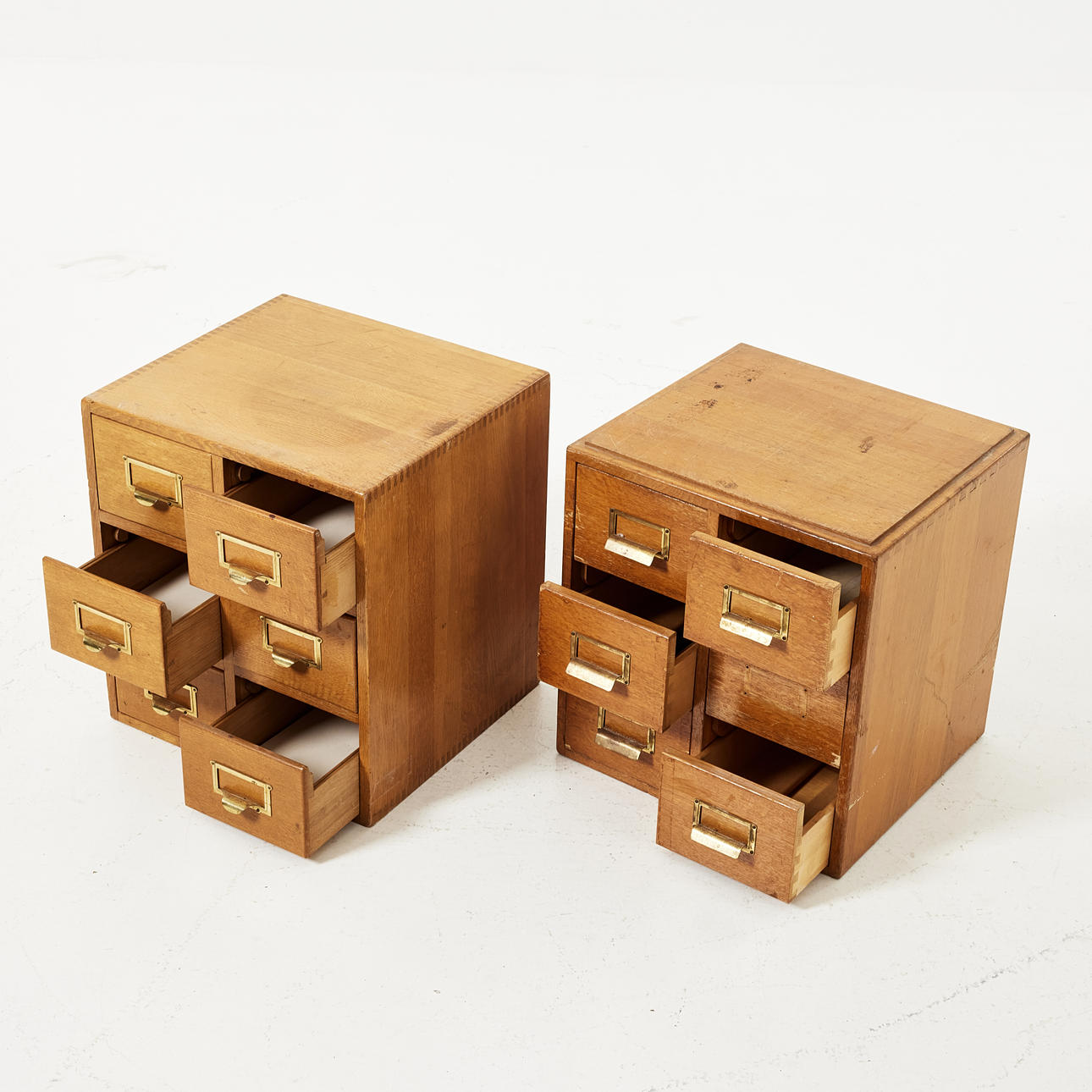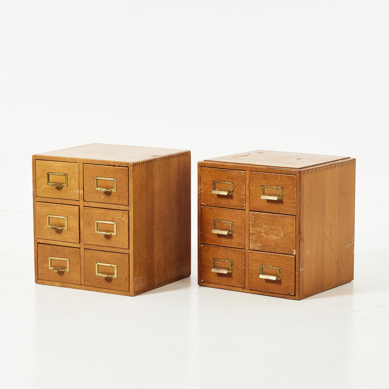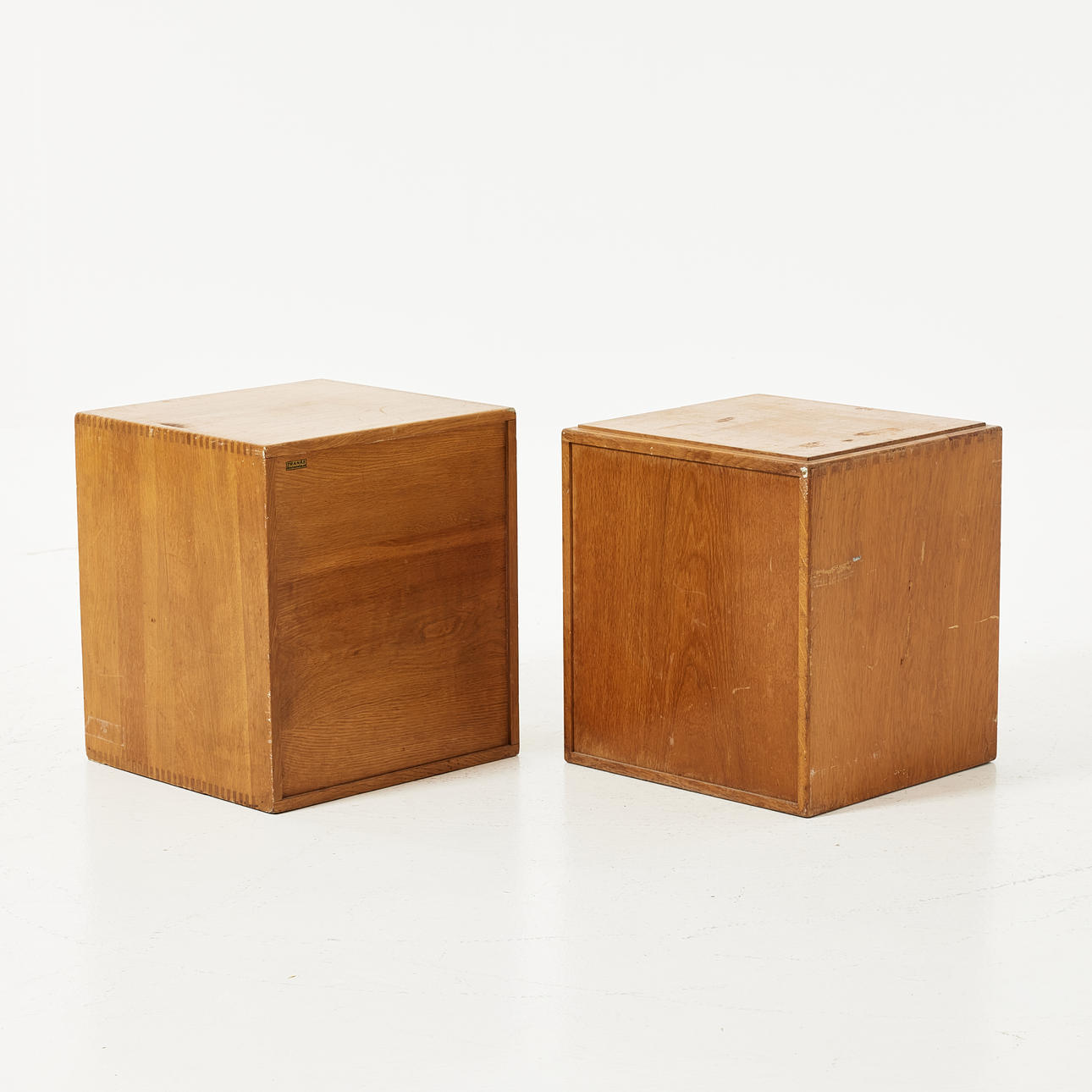 Massiv ek, inredda med 6 lådor vardera, höjd 44, 38x40 cm.