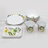 tallrikar 2 st, muggar 2 st, fat 2 st, skålar 4 st.