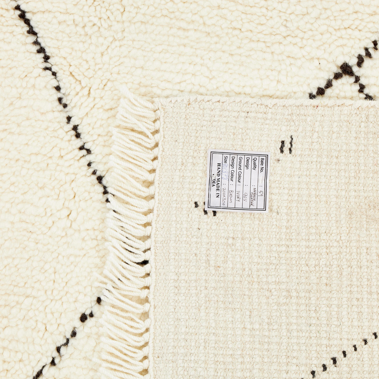Ull på ull, randig på vit botten, Ca 300x200 cm.