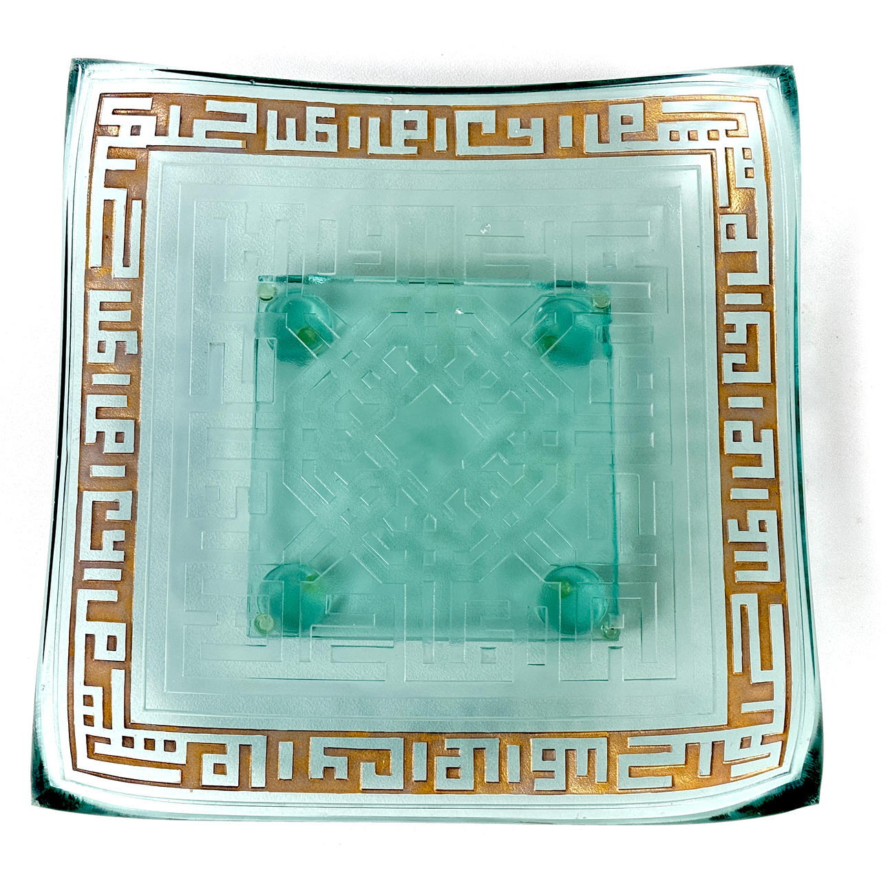 Ett fantastiskt stort mexikanskt studioglasbord med signerad bas, 40 x 40 cm.