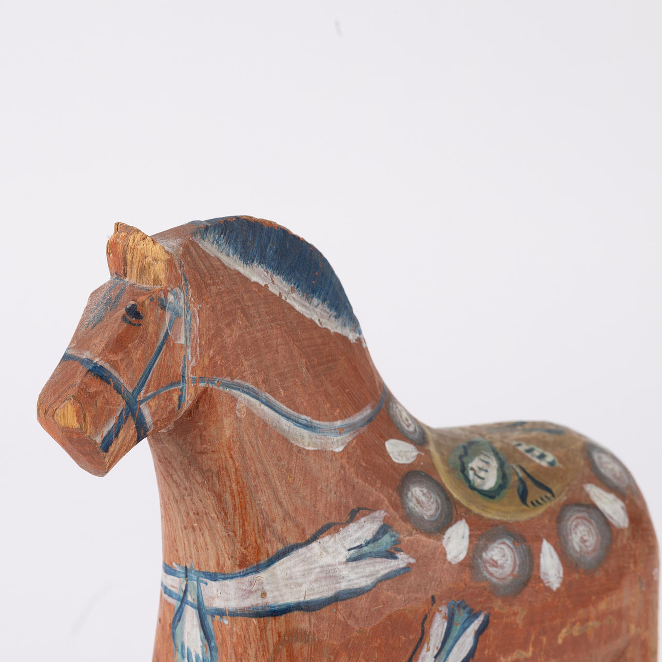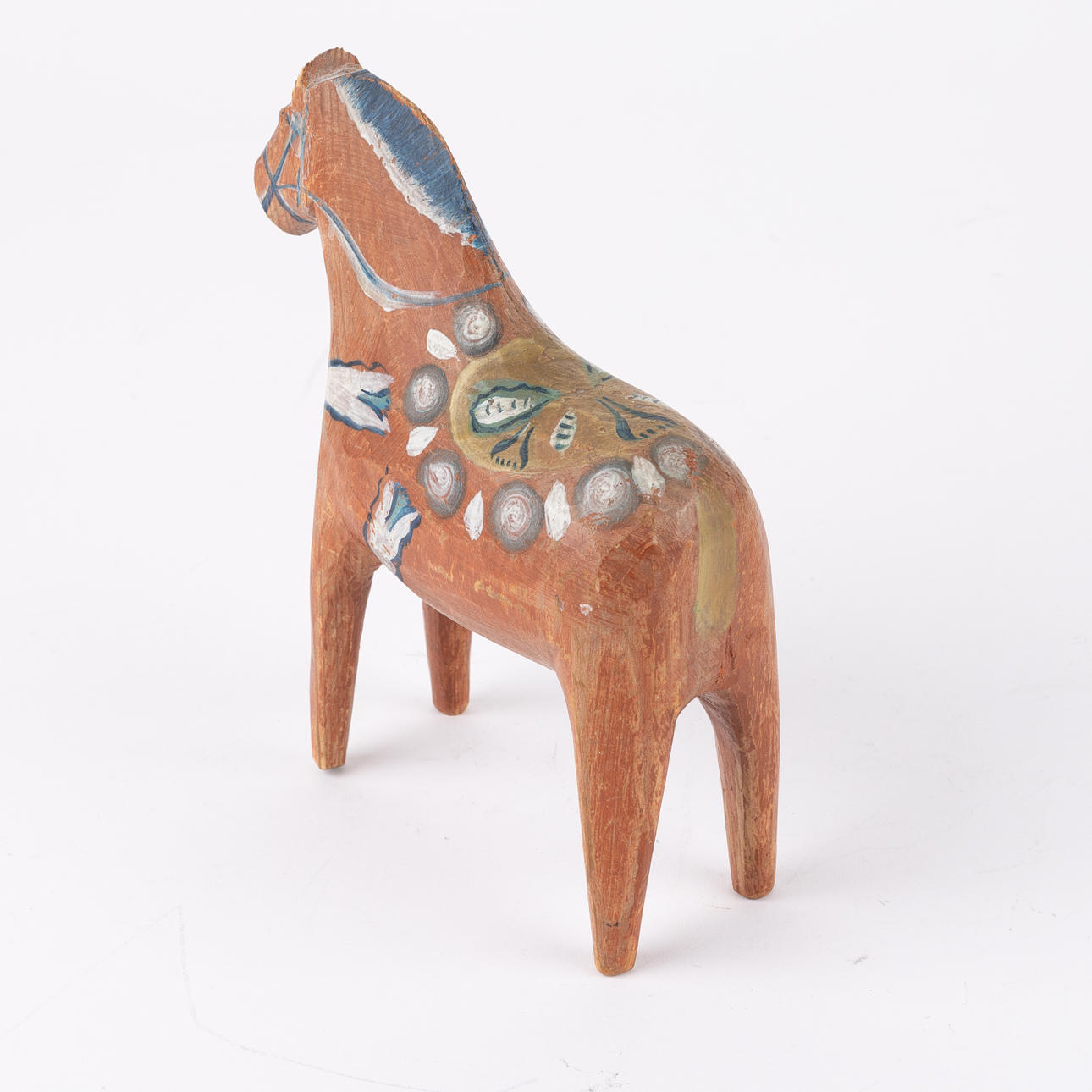 Bemålat trä. Längd ca 16, höjd ca 18 cm.