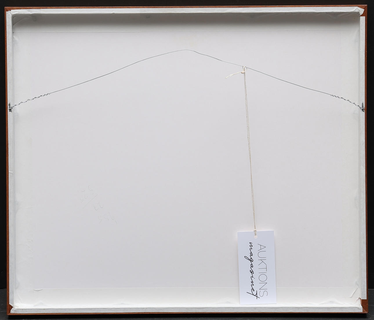 Ej examinerad ur ram. Vågigt papper, översta vänstra hörnet reva i papper.