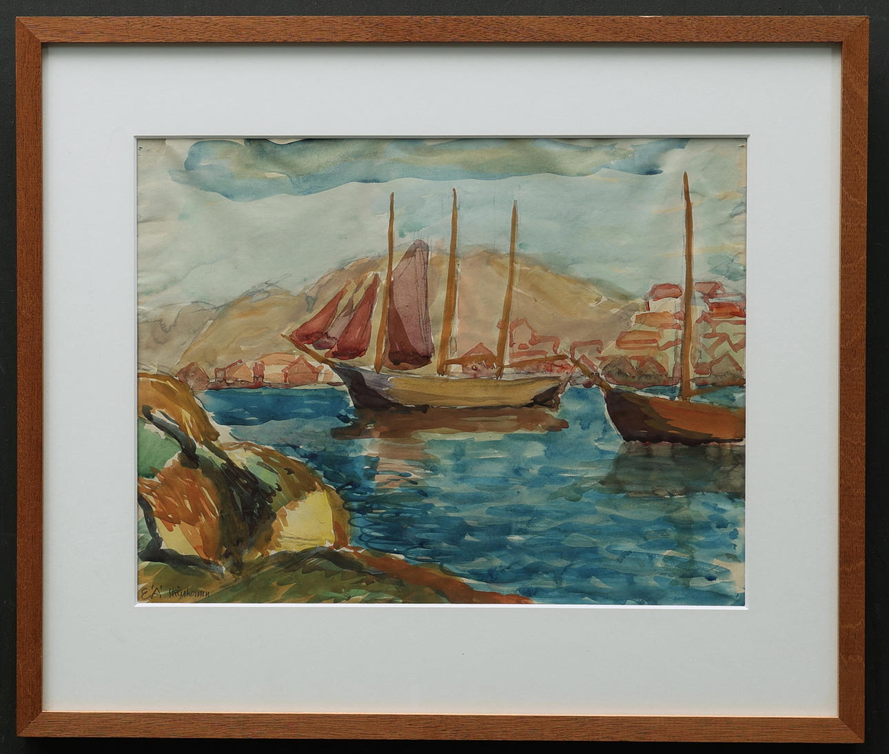 3597400. ERLING ÄRLINGSSON. akvarell,"Skärhamn", monogramsignerad E.Ä.