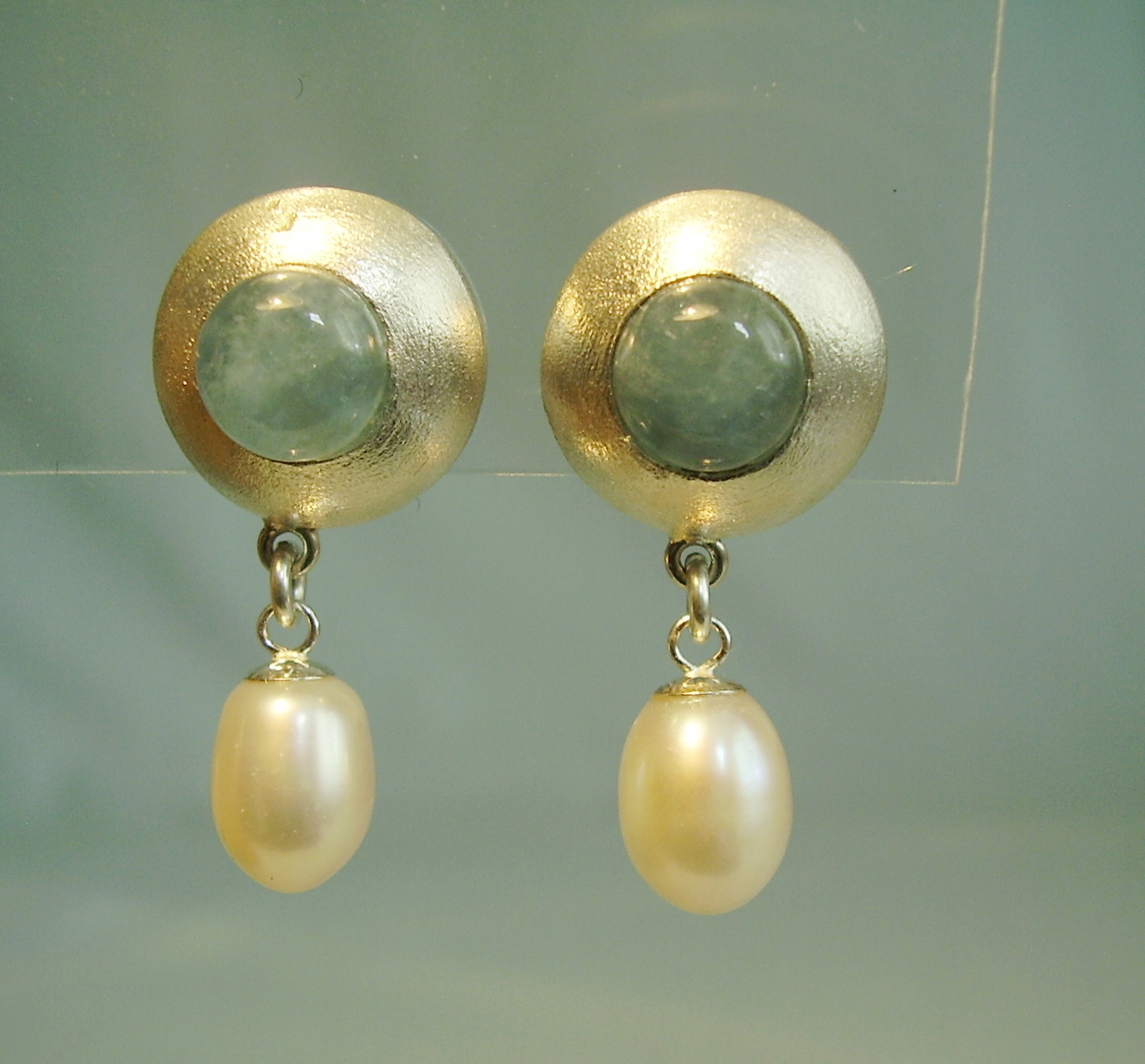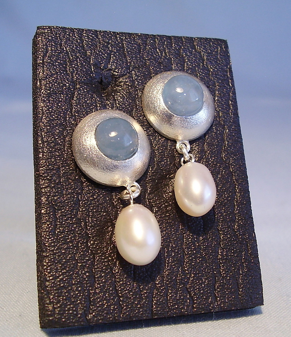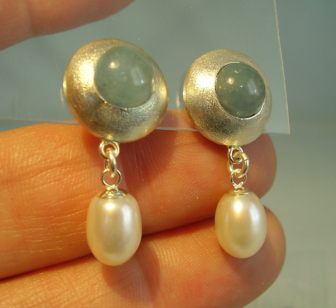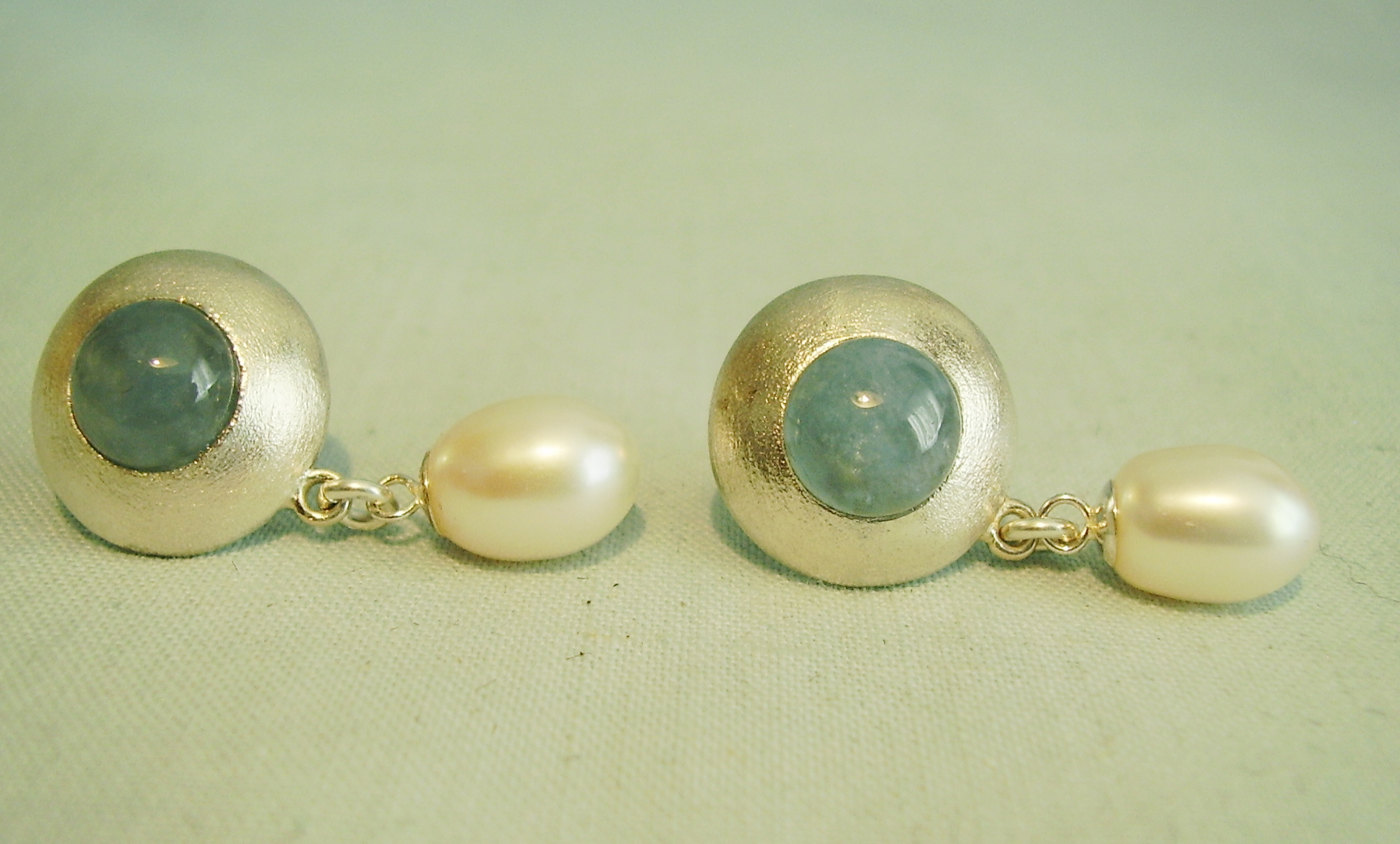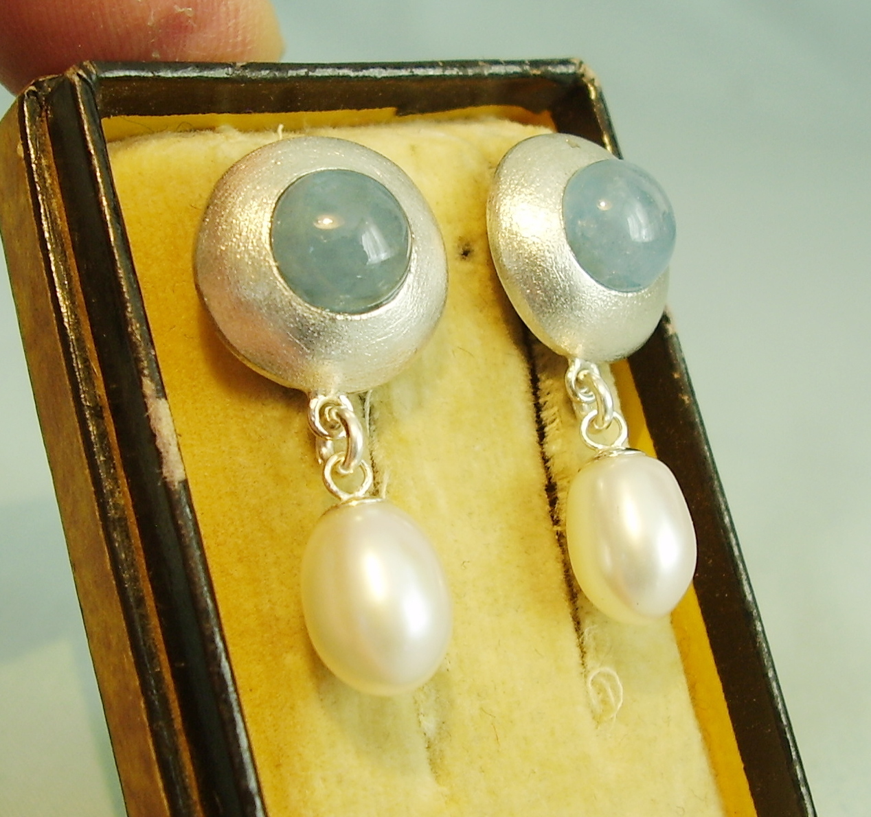 359837. AKVAMARIN ÖRAT DUBBAR MED RIKTIGA PÄRLOR.