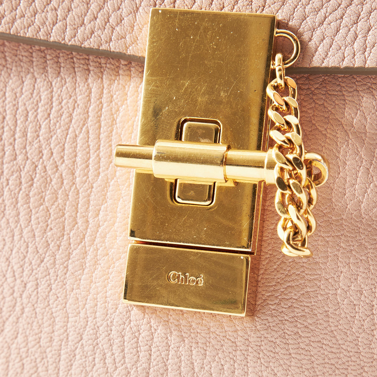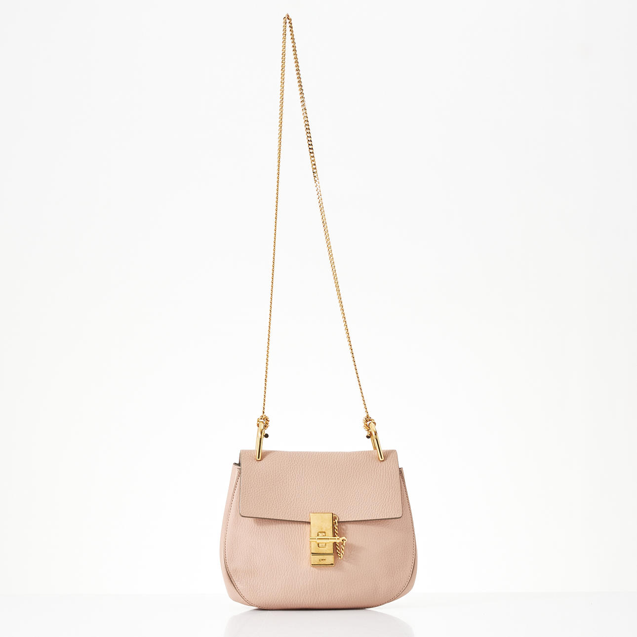 Crossbodymodell i mjukt skinn i nude, kedja och spänne med låskolv i gulmetall, fodrad i greig mocka, invändigt med ett mindre fack, märkt "Chloé made in Italy", medföljande äkthetskort samt skötselråd, mått ca 23x20x7cm.