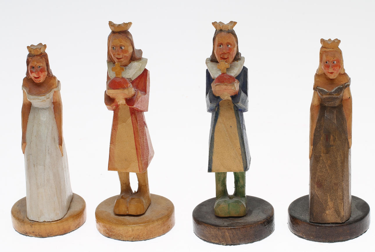 SCHACKPJÄSER, 32 st, snidat trä, 1900-tal.