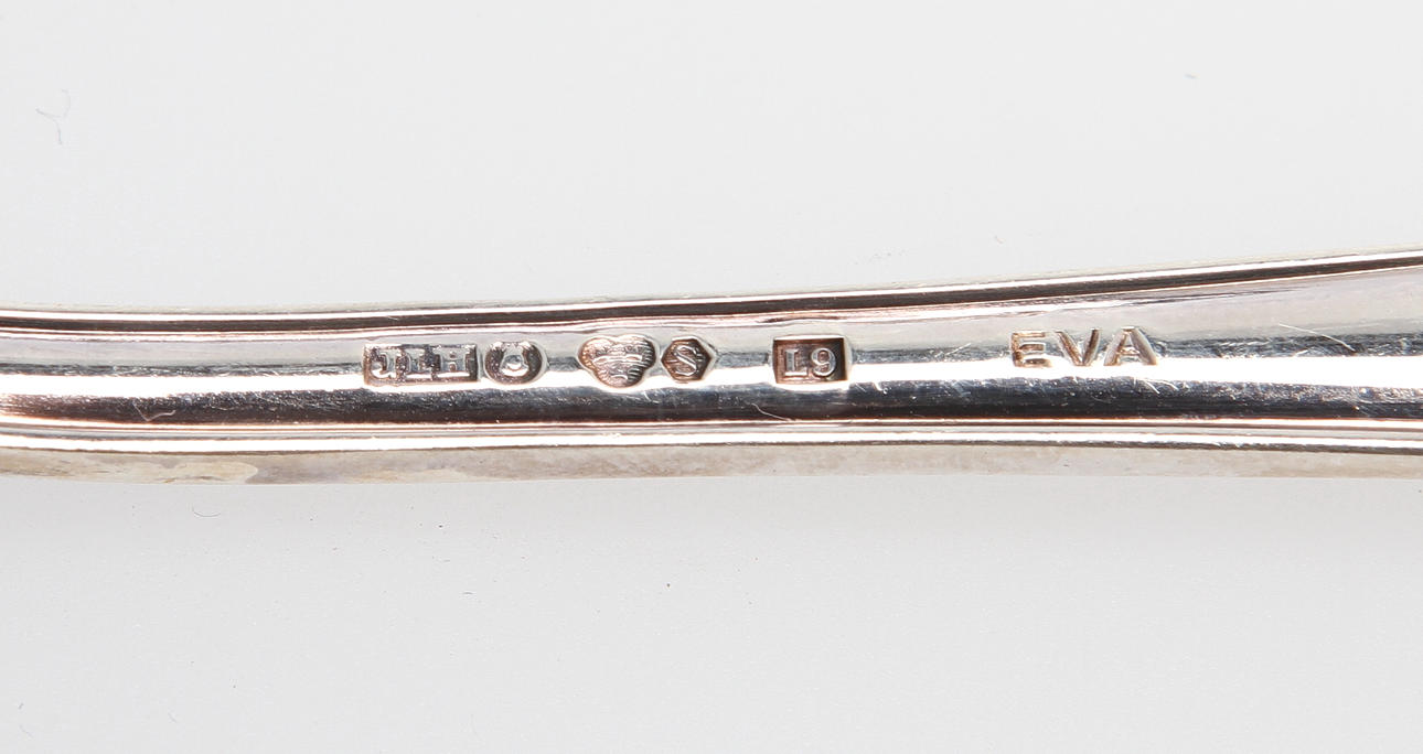 12 gafflar, 11 knivar, 12 matskedar, 10 kaffeskedar samt 1 dessertsked.