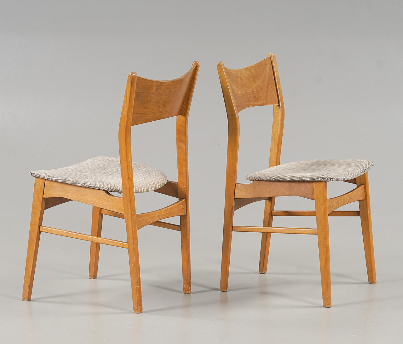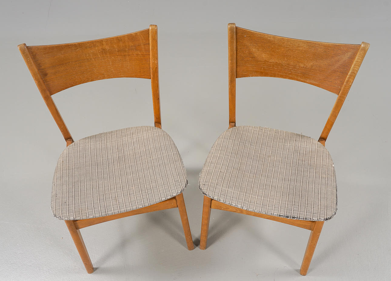 Fanerade med teak, formpressade ryggbrickor och sitsar.