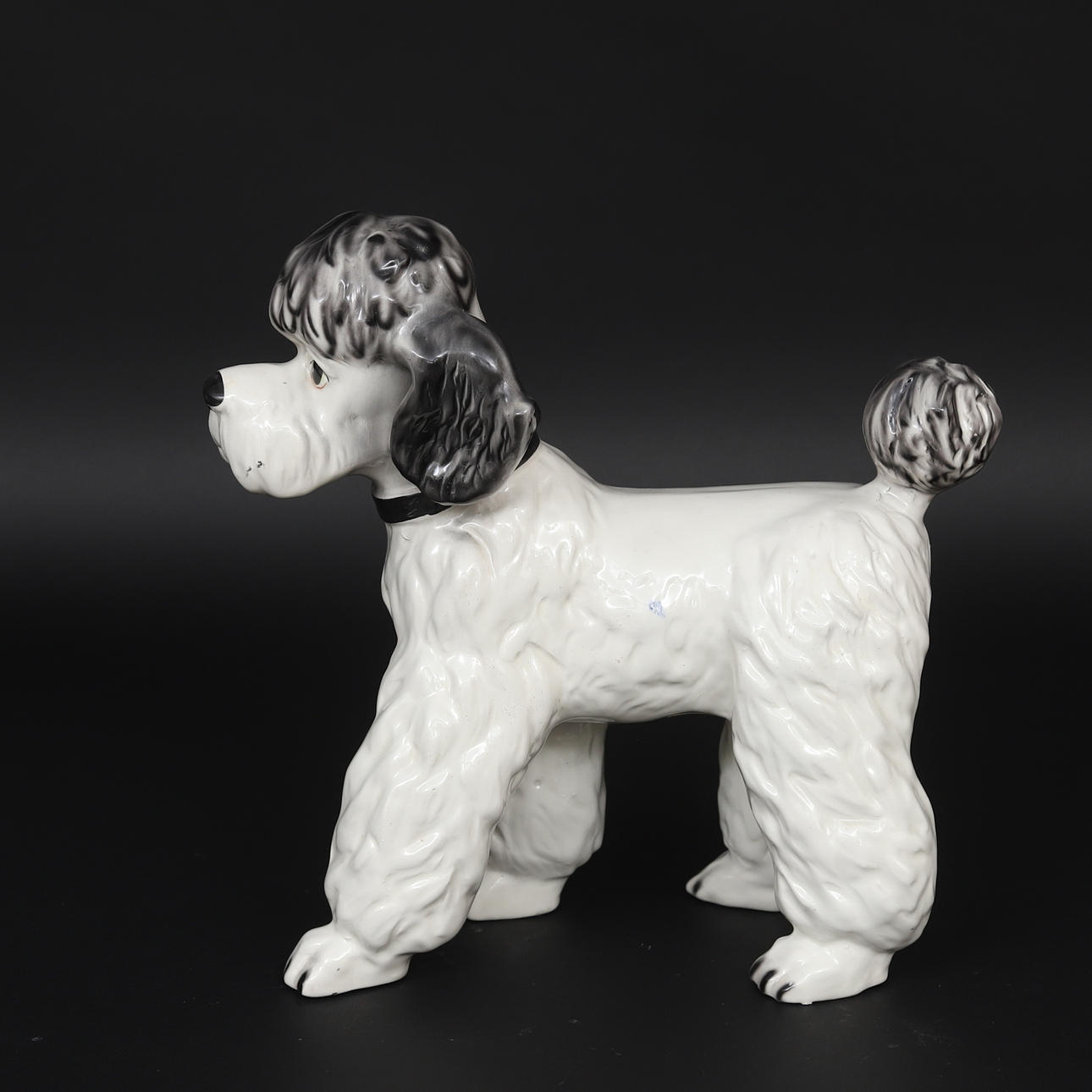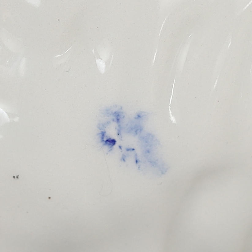 Hanteringsspår, blått märke i glasyren på ena sidan.