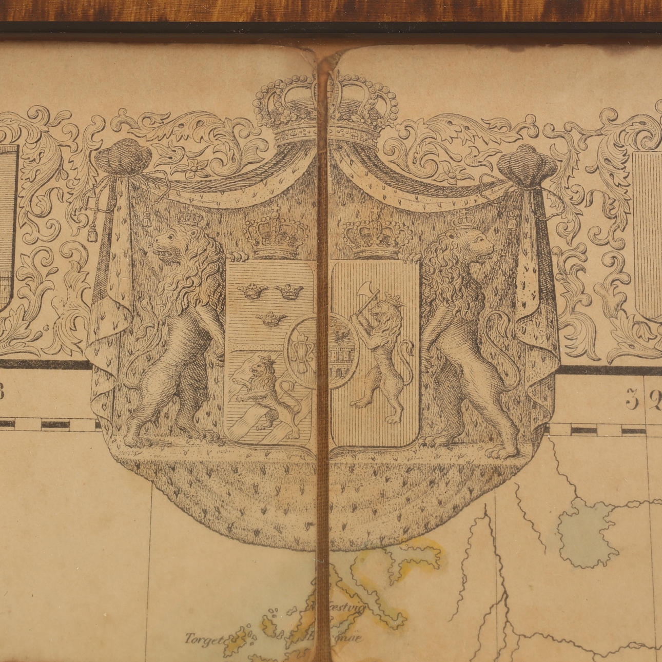 Ram cirka 90 x 67 cm. Bestående av mindre ihopsatta delar.