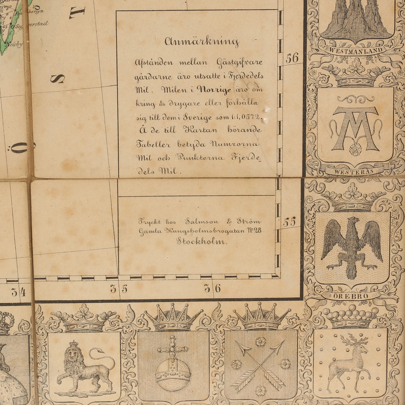 KARTA, Landswägarne, Sverige, Norge, Danmark, 1846.