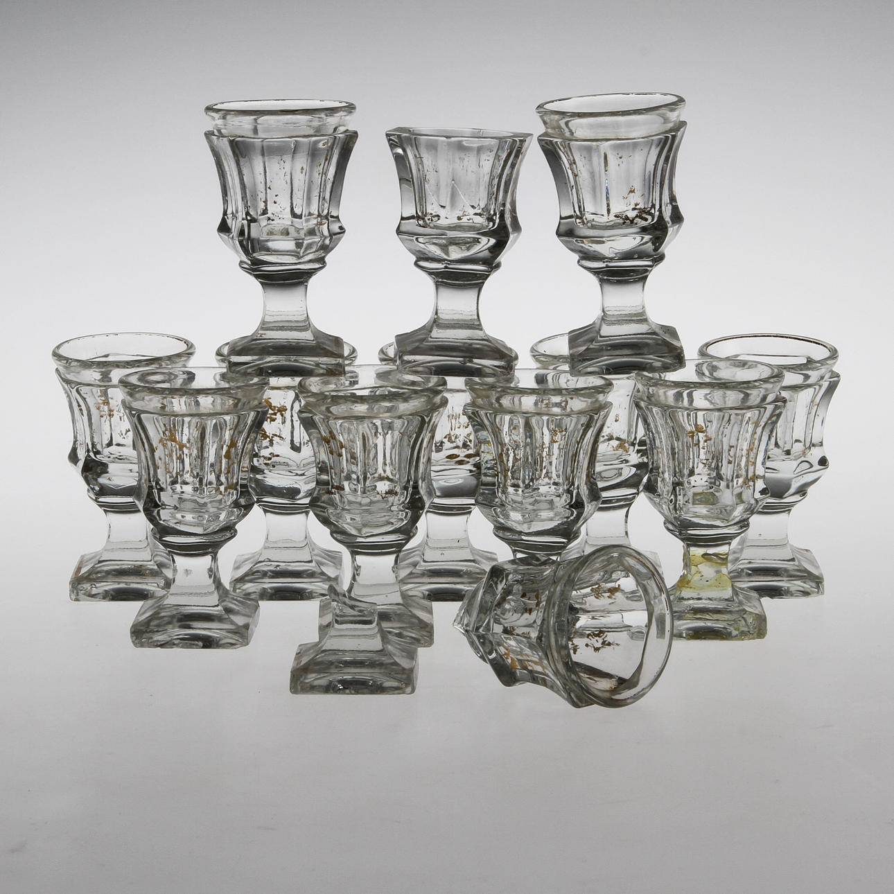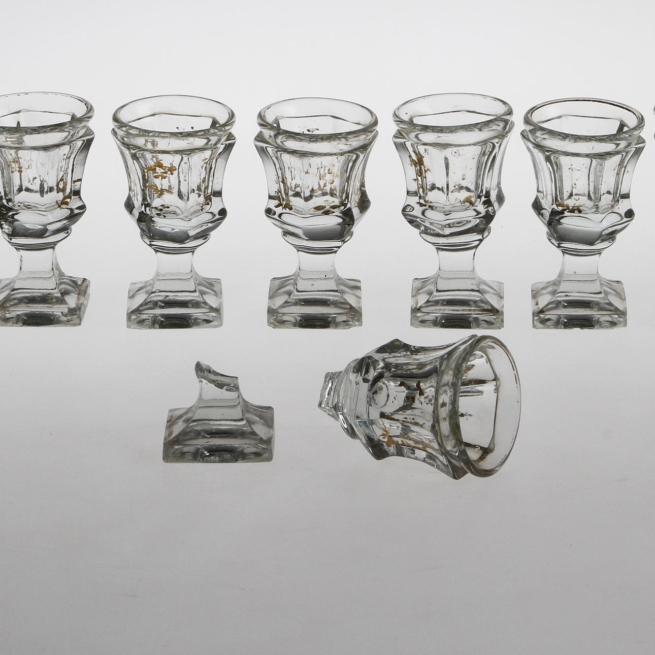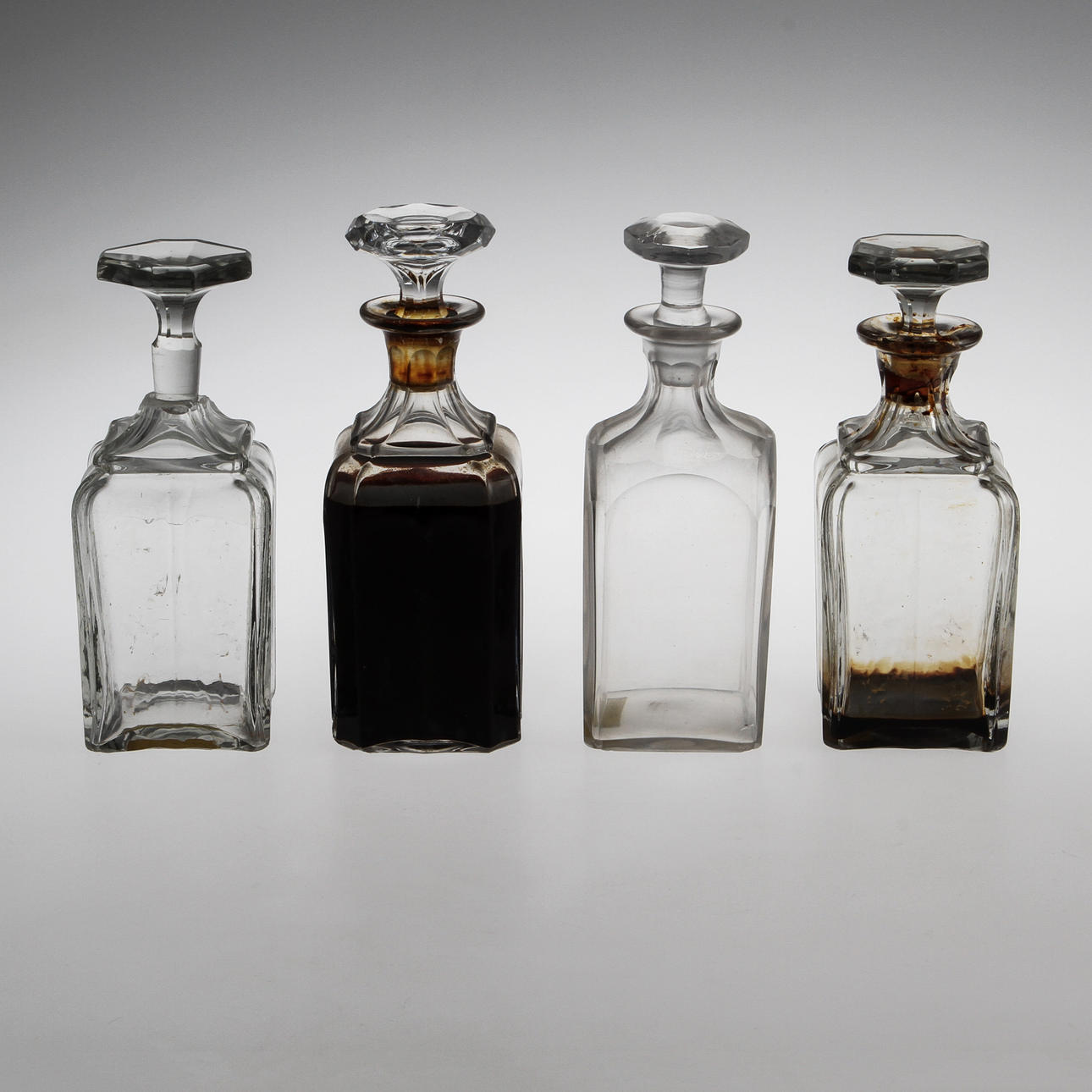 Skador. Lösa gångjärn. Karaffer med nagg.