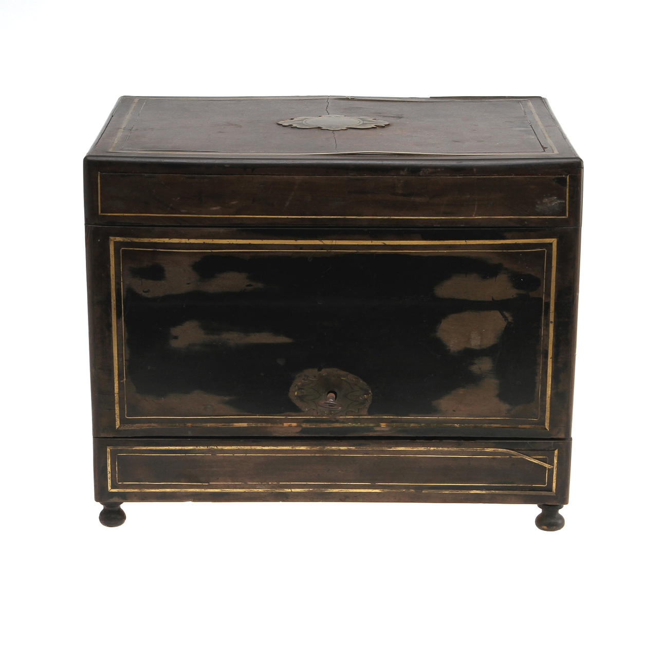 Ädelträ med inlägg av gulmetall. Längd 33, bredd 24, höjd 27 cm.