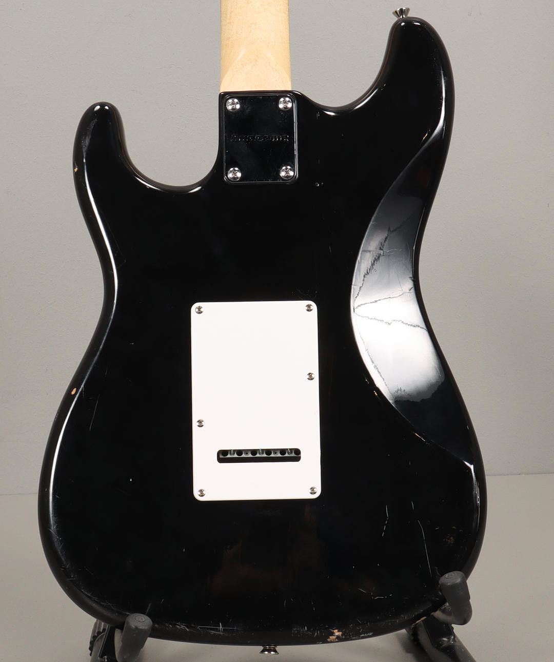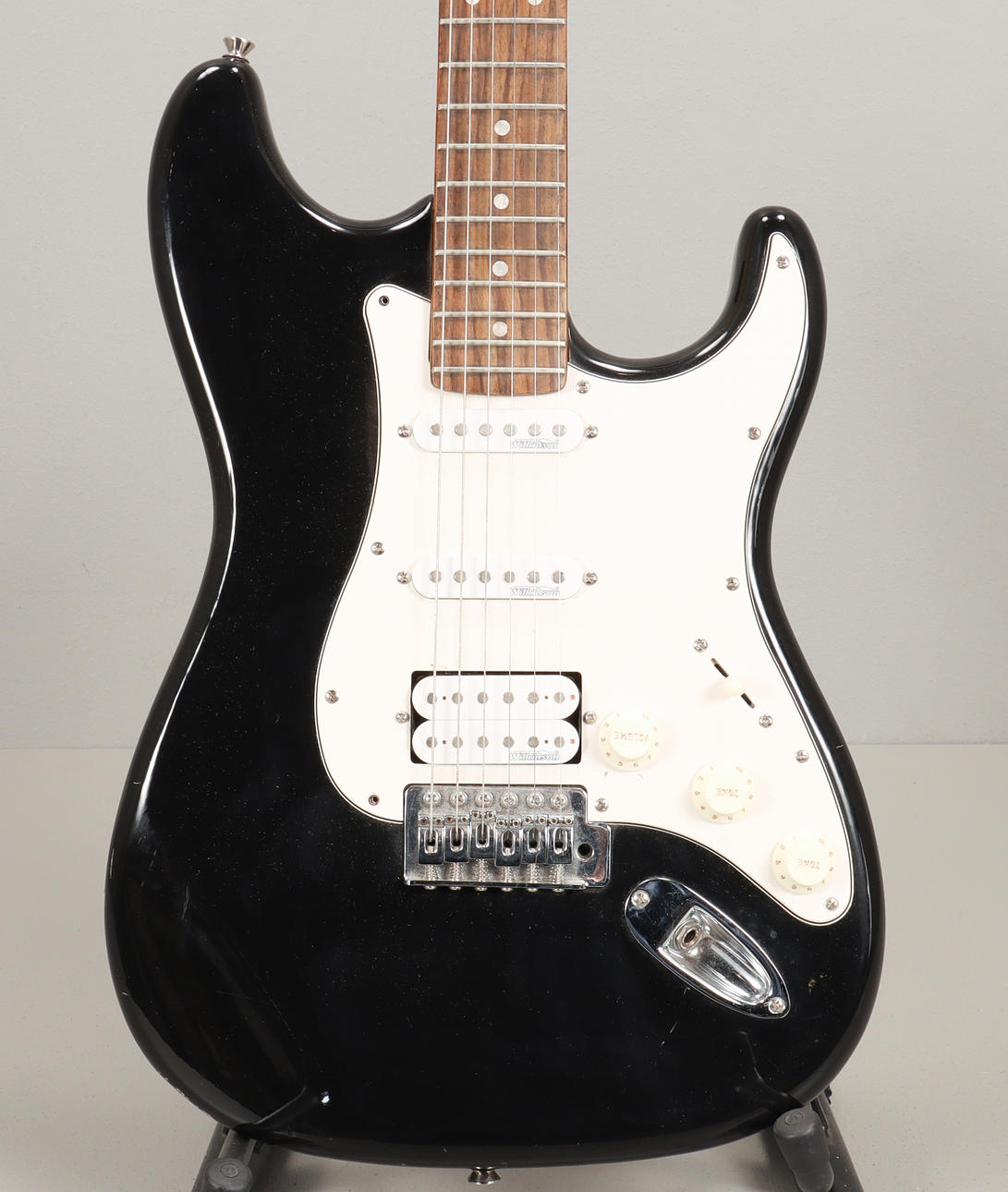 ST-Modell, Wilkinsonpucker, 2 singlecoil samt 1 humbucker. Greppbäda i rosewood.