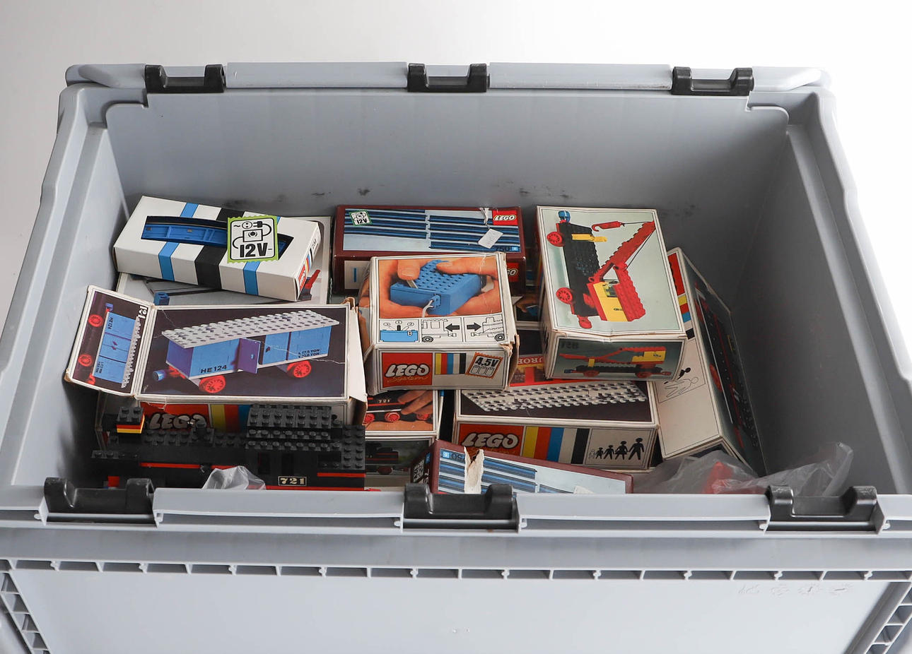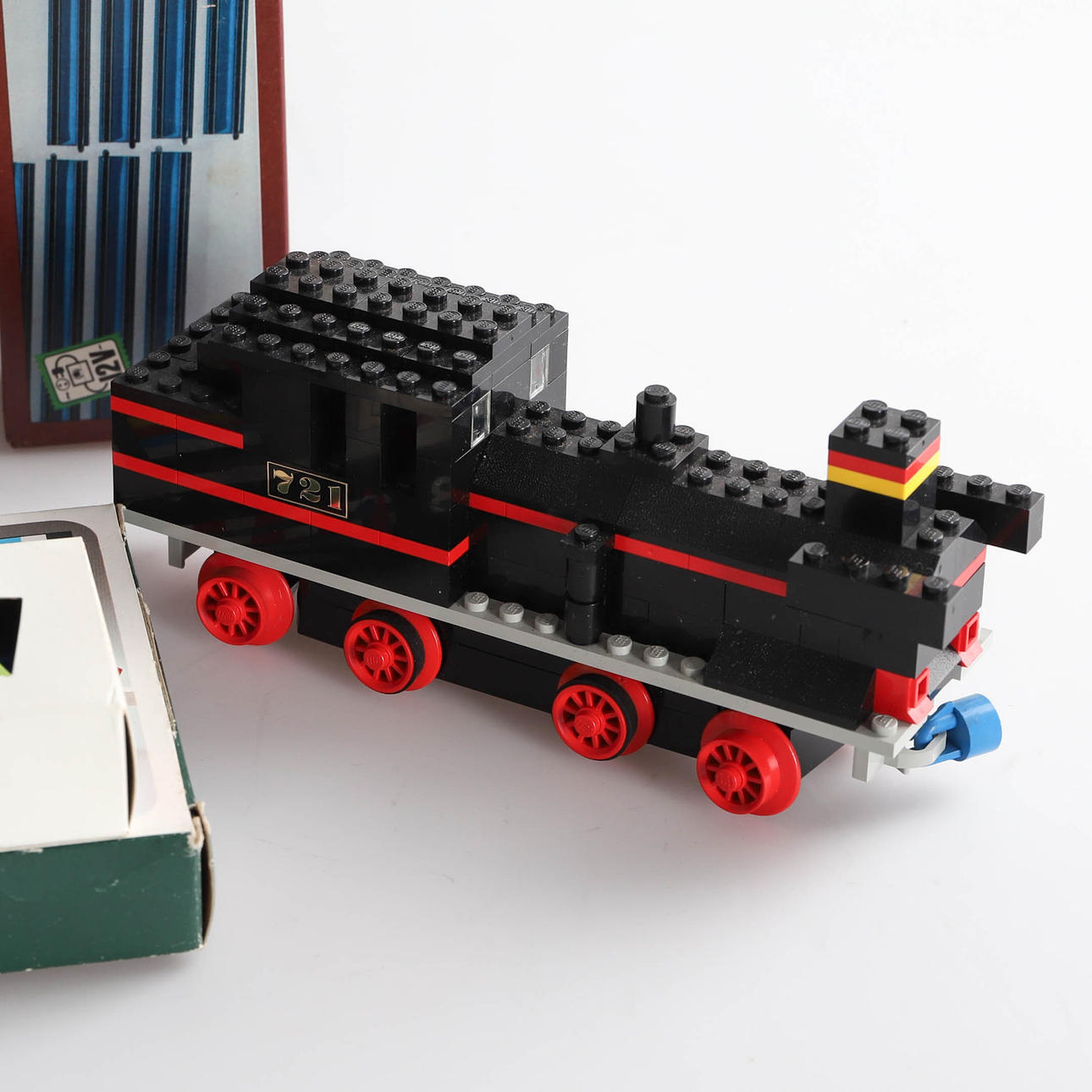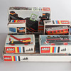 Lego 60 - 70 tal. Lego-set 750, 158, 751, 101, 751, 753, 124, 128, 117, 721, 123, 120. Många räls se bild.