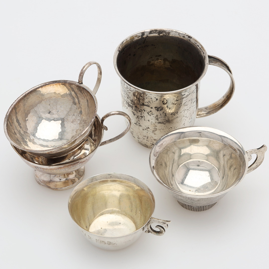 3606403. PUNCHMUGGAR, silver, 5 delar, 1900-tal.