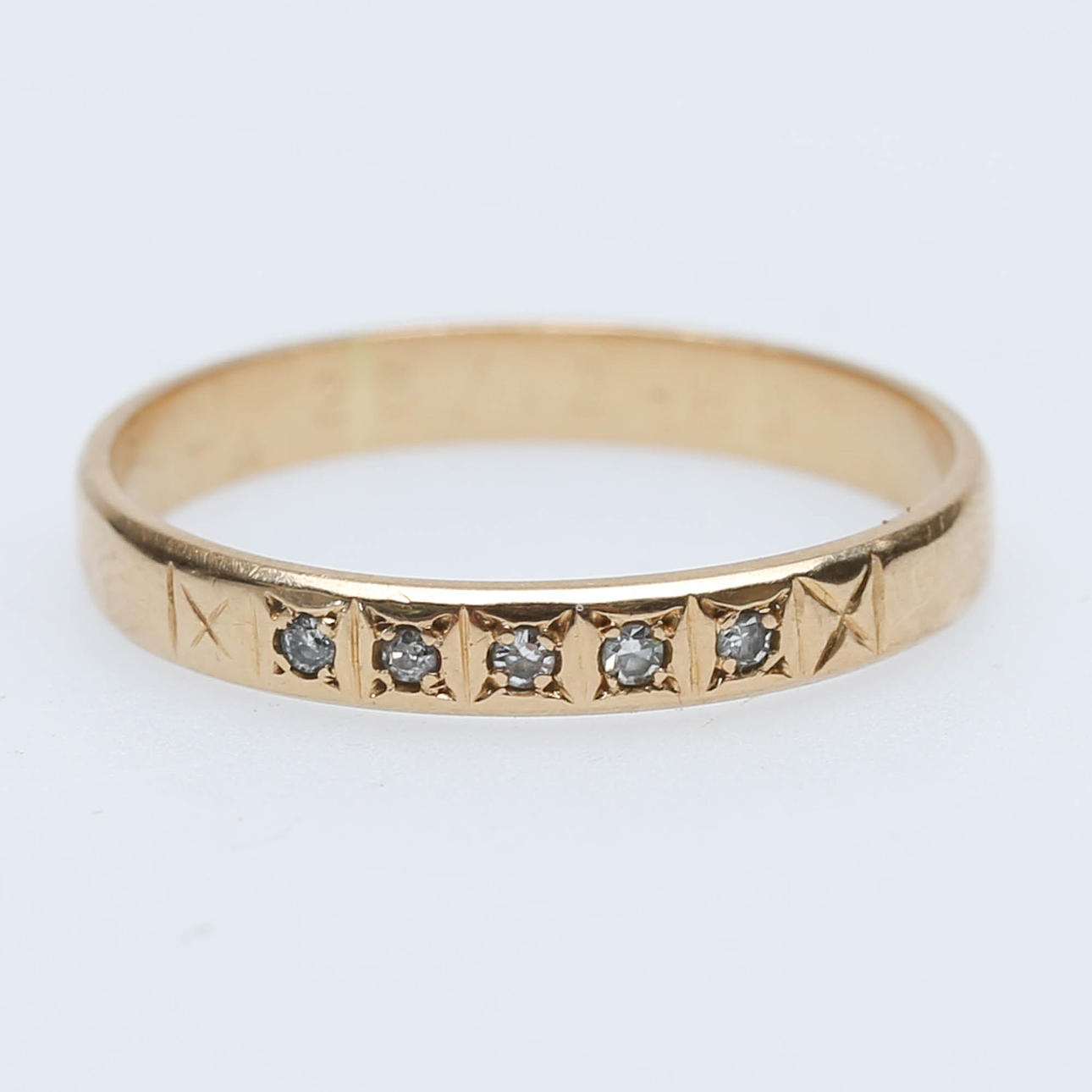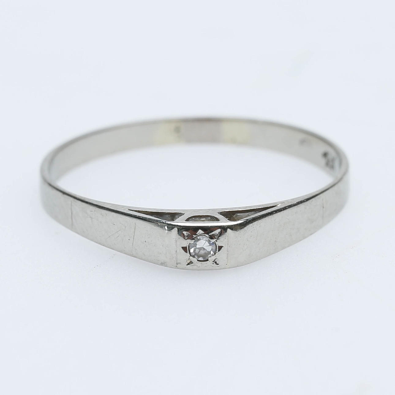 Ring vitguld med 1 diamant, ca 1,8 gr, str. 19. Ring gulguld med 5 st mindre diamanter, ca. 2 gr, str 17. Vikt total ca. 3,8 gr.