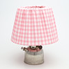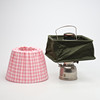 Höjd ca 32 cm med 2 tygskärmar varav en militär tre kronor.