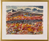 Fjälllandskap med personer. Signerad. 25,5x33 cm.