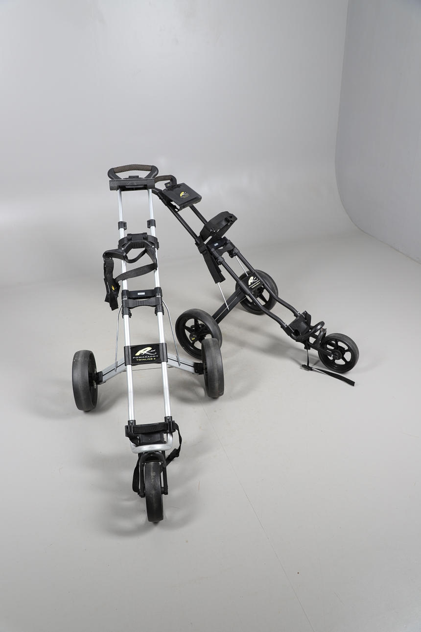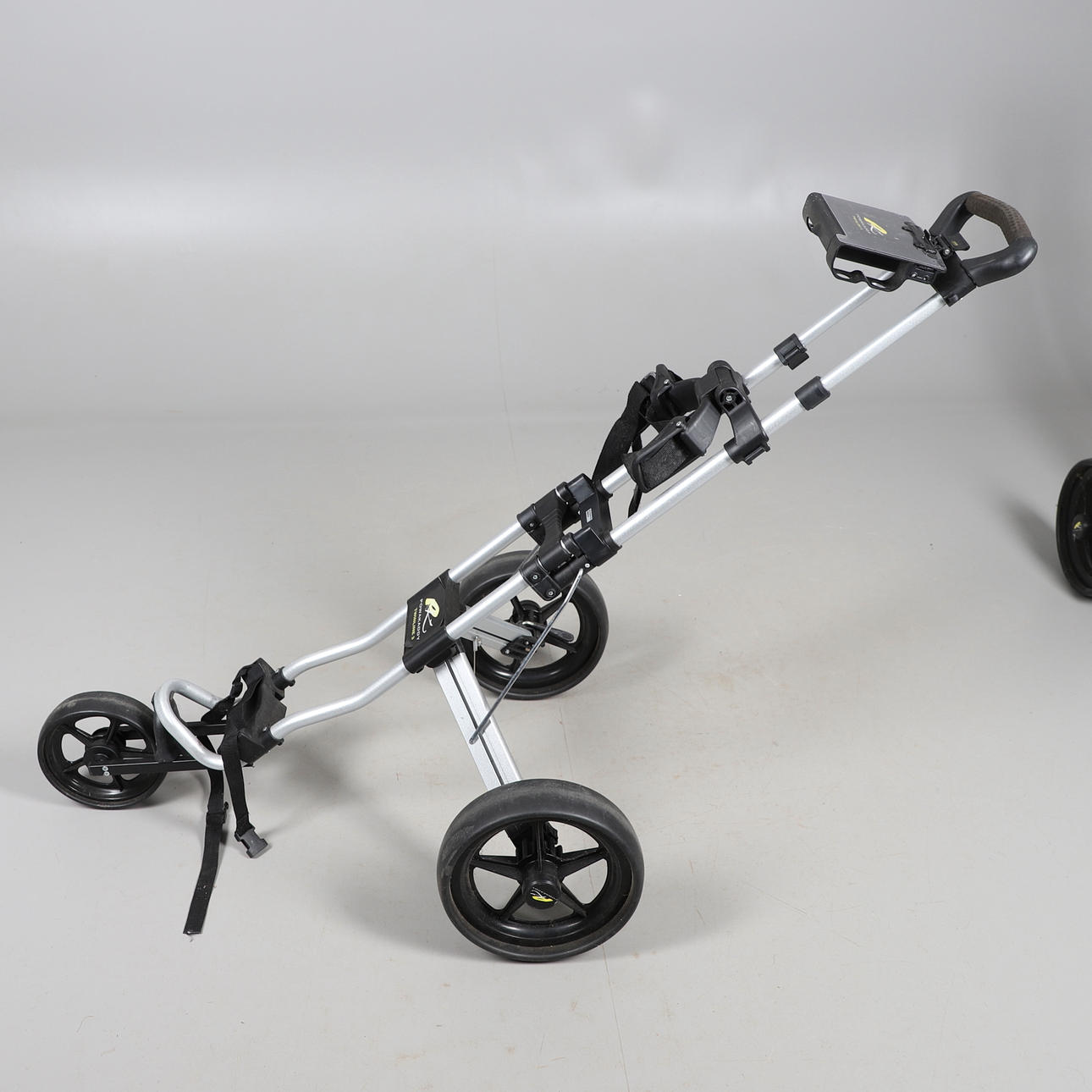 GOLF - TVÅ POWAKADDY GOLFVAGNAR OCH GOLFVÄSKOR.