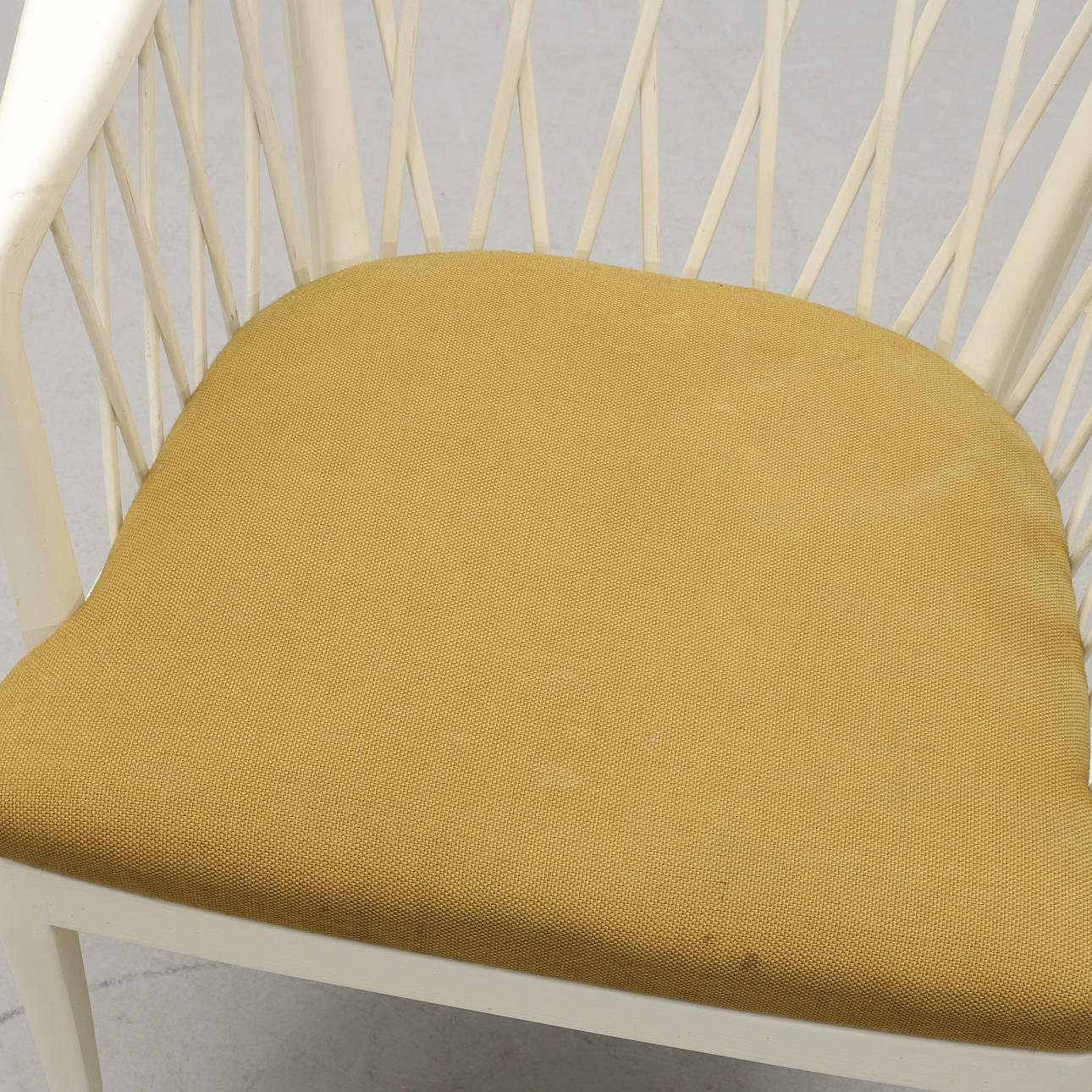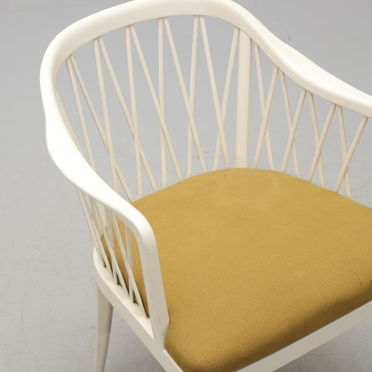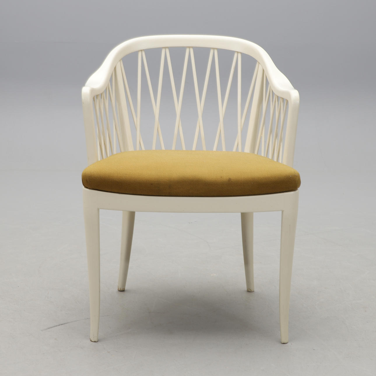 Stomme i bemålat trä. Lös stoppad sits. Sitthöjd 45, bredd 55, rygghöjd 80 cm.