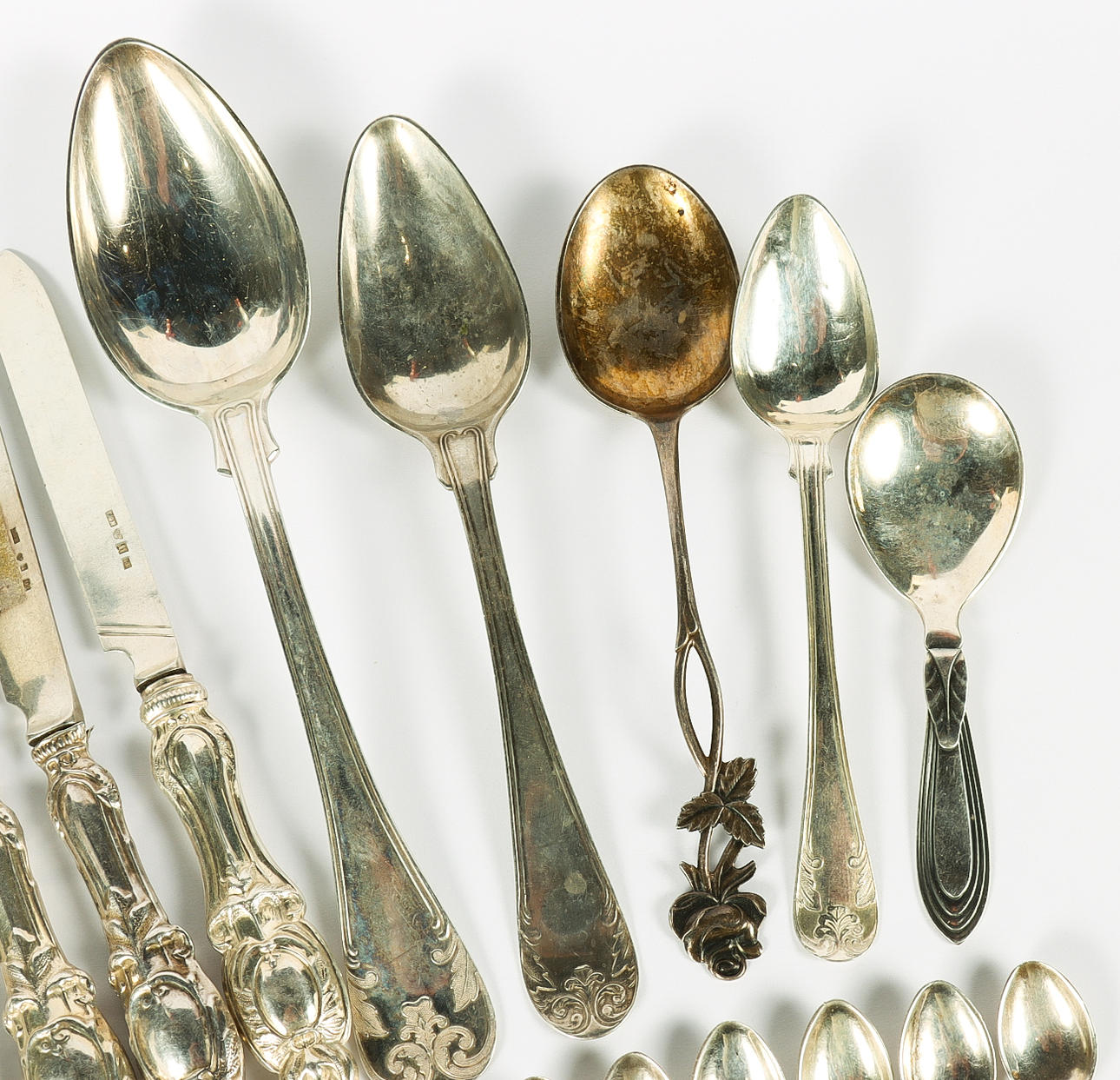Knivarna med blad i silver men möjligen fyllda skaft.