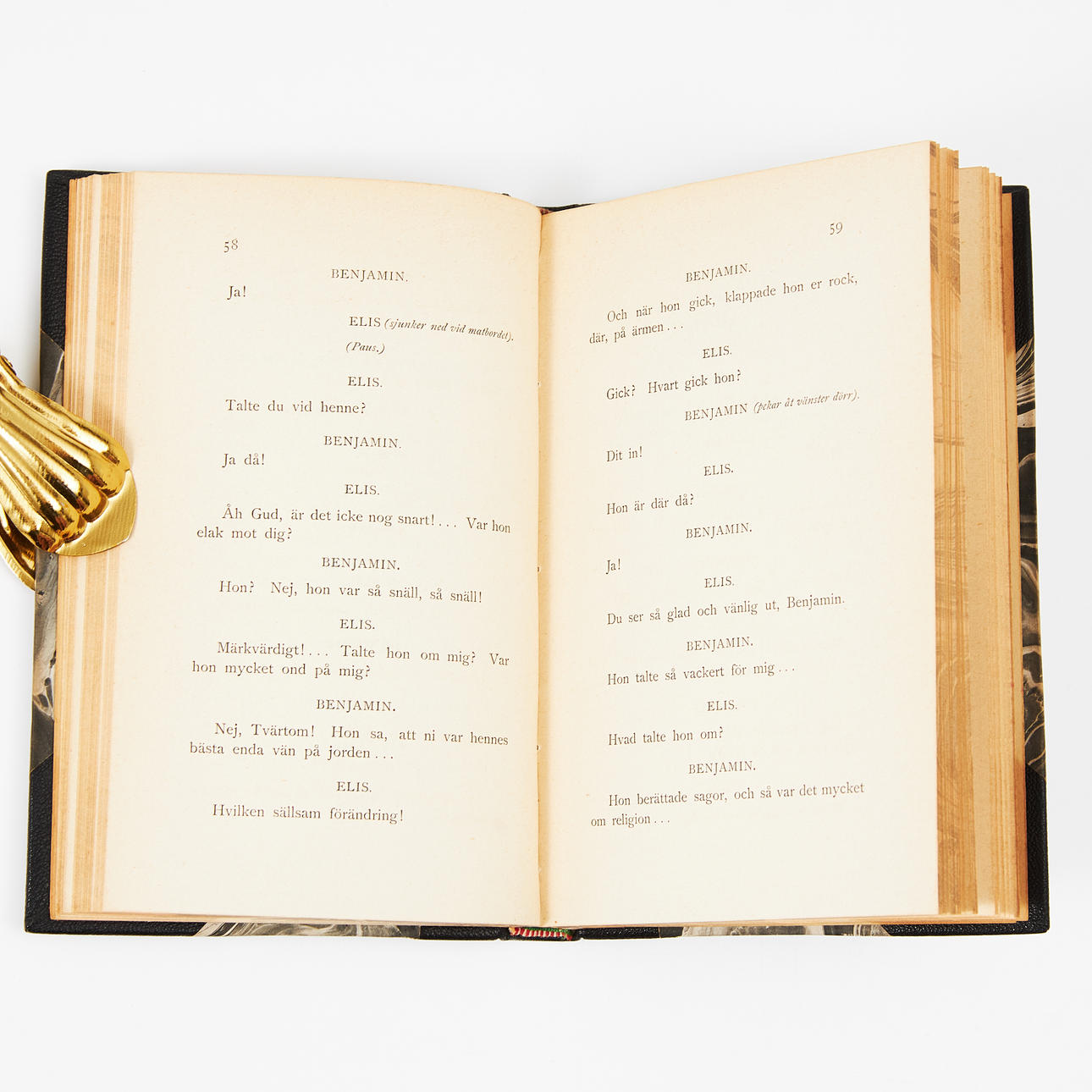 Båda med medbundet originalomslag. Senare svarta hfrbd, ryggar med upphöjda bind och titelfält, marmorerade snitt.