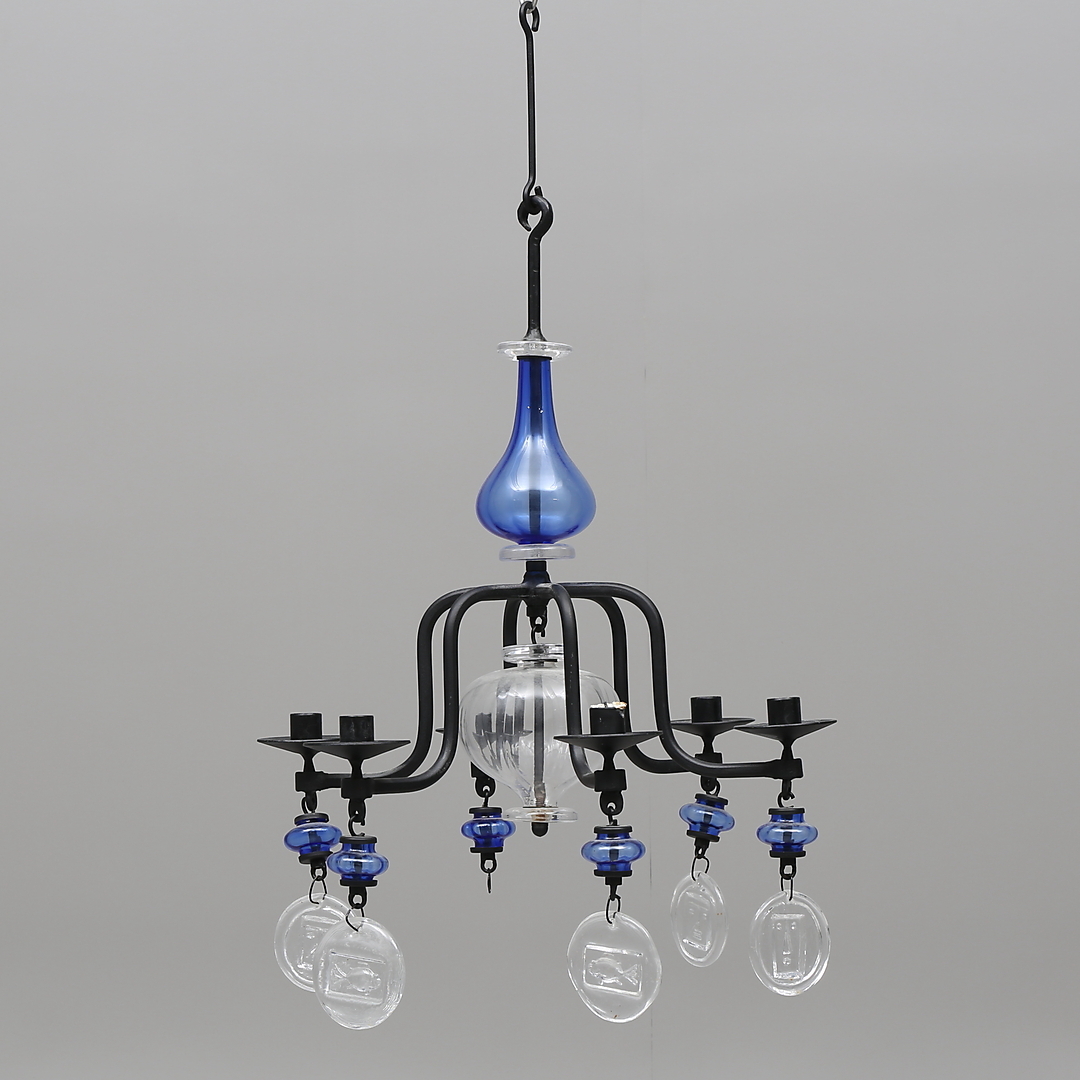 361908. ERIK HÖGLUND. Ljuskrona, glas/smide, Boda.