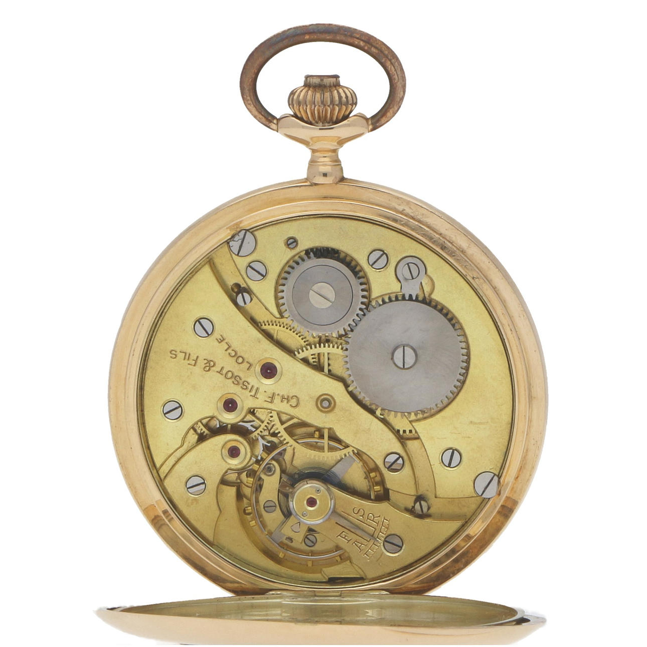 guld inre omslag, metall urtavla, guldpläterade bro rörelse, kompensation balans, Breguet spiral.