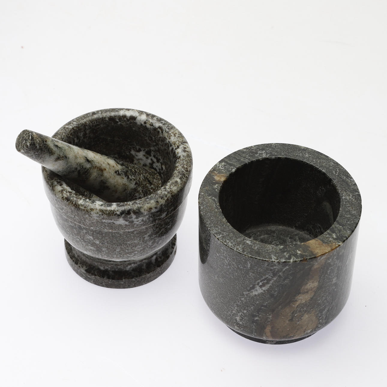 Vas, höjd ca 16 cm. Skål på fot, höjd ca 7,5 cm. Fat, diameter ca 8,5 cm. Miniatyrmortel, höjd ca 6 cm. Ljuslykta, höjd ca 6,5 cm.