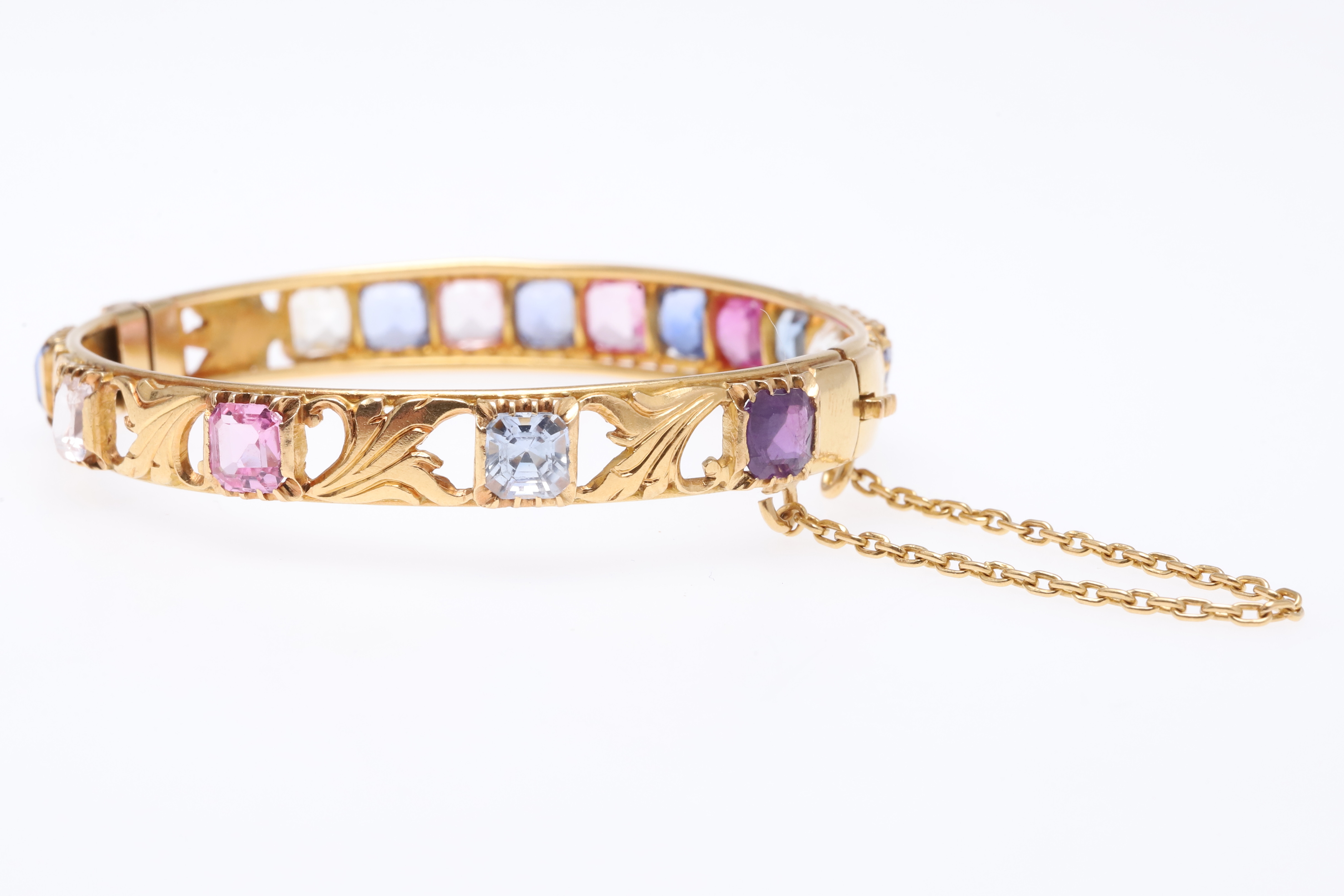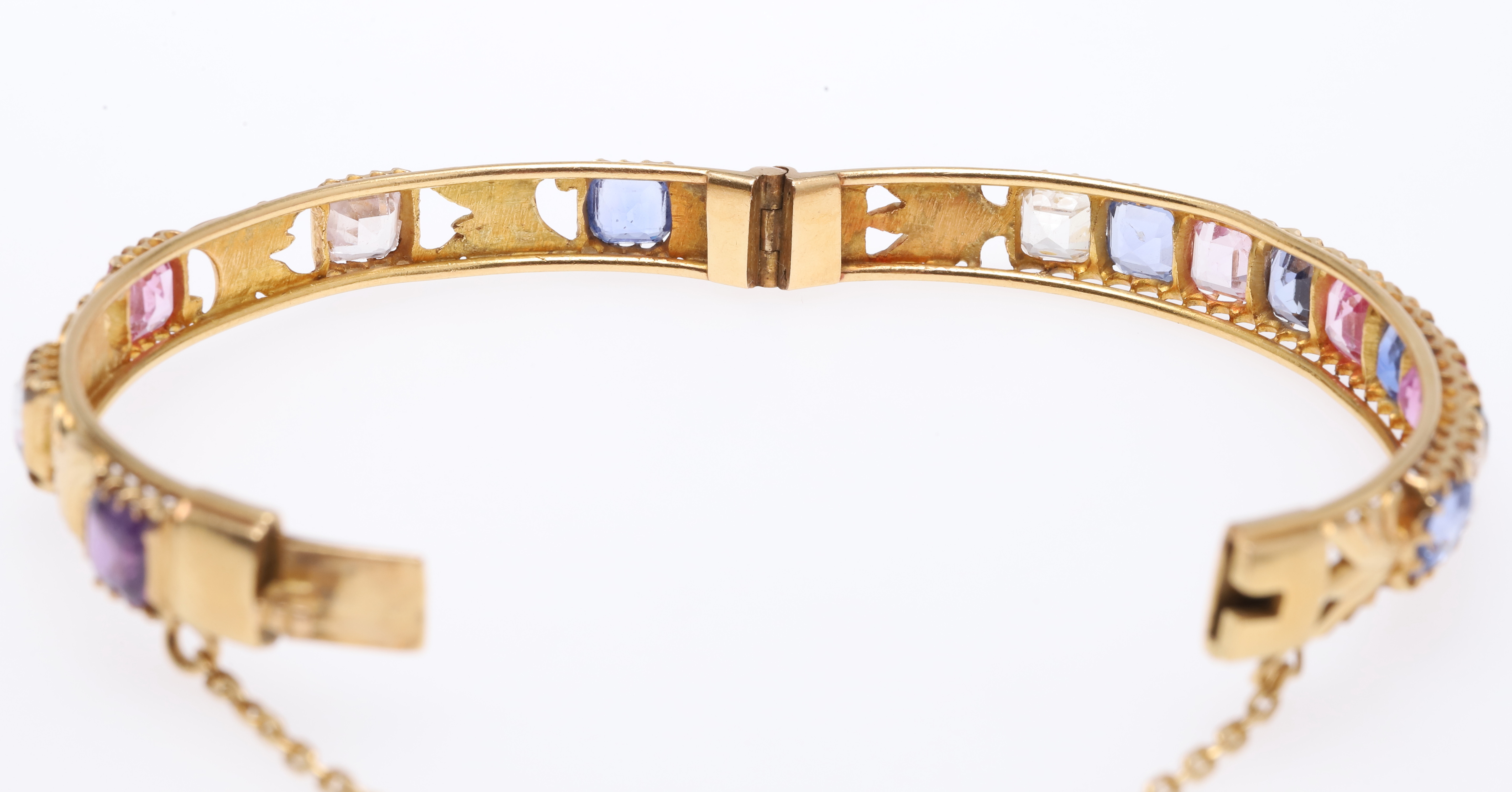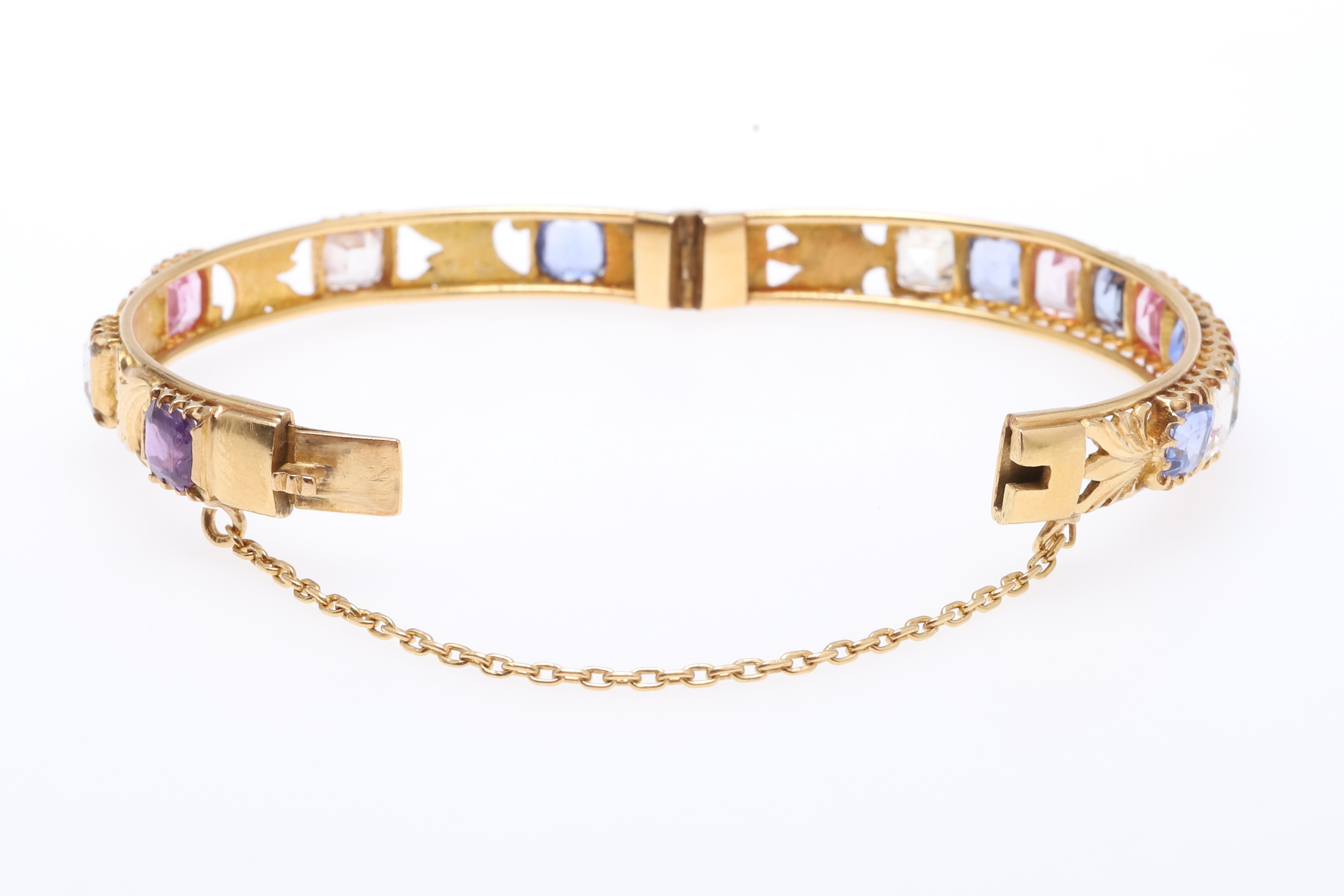 769. 3629744. ARMRING MED GÅNGJÄRN I GULD OCH SAFIR.