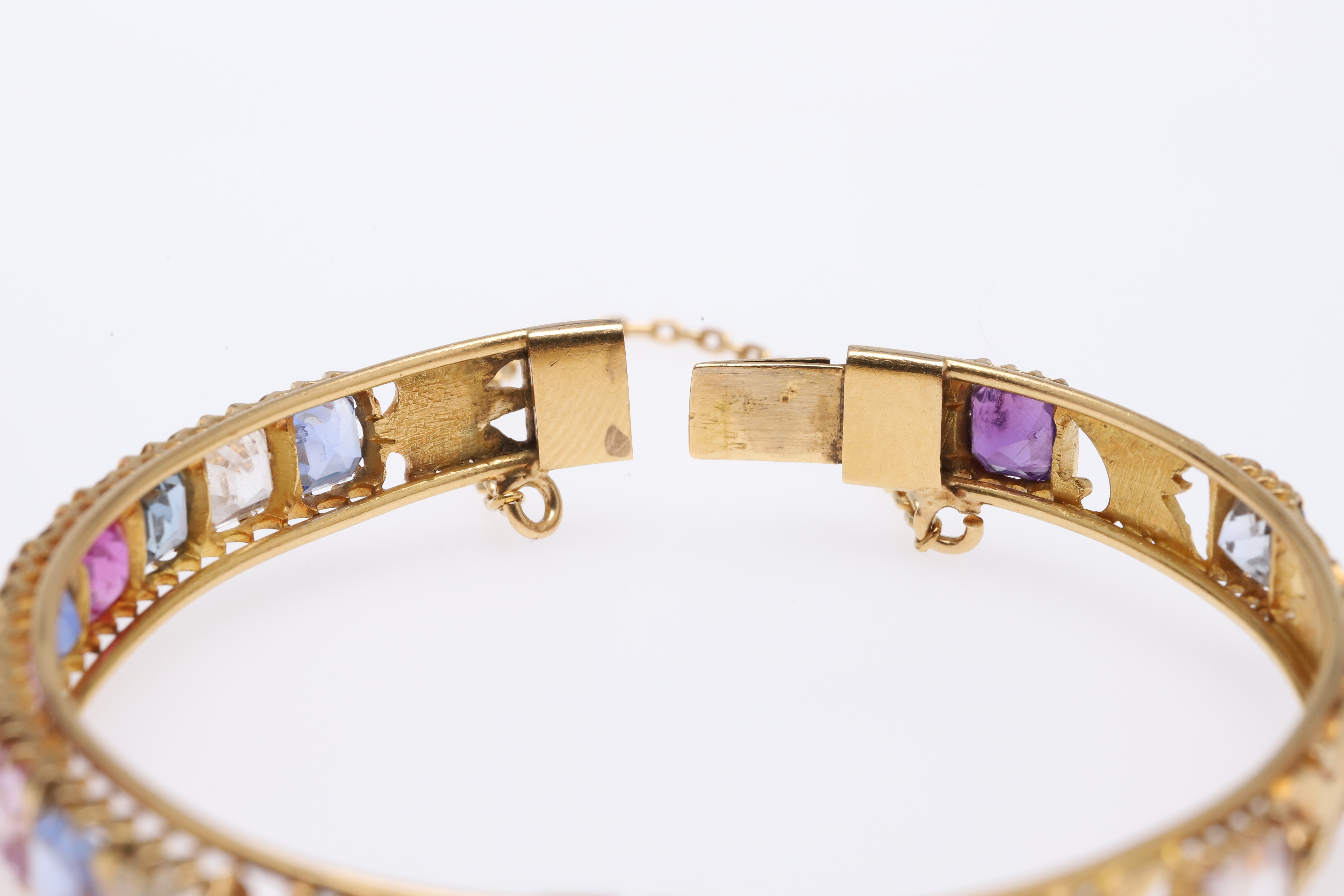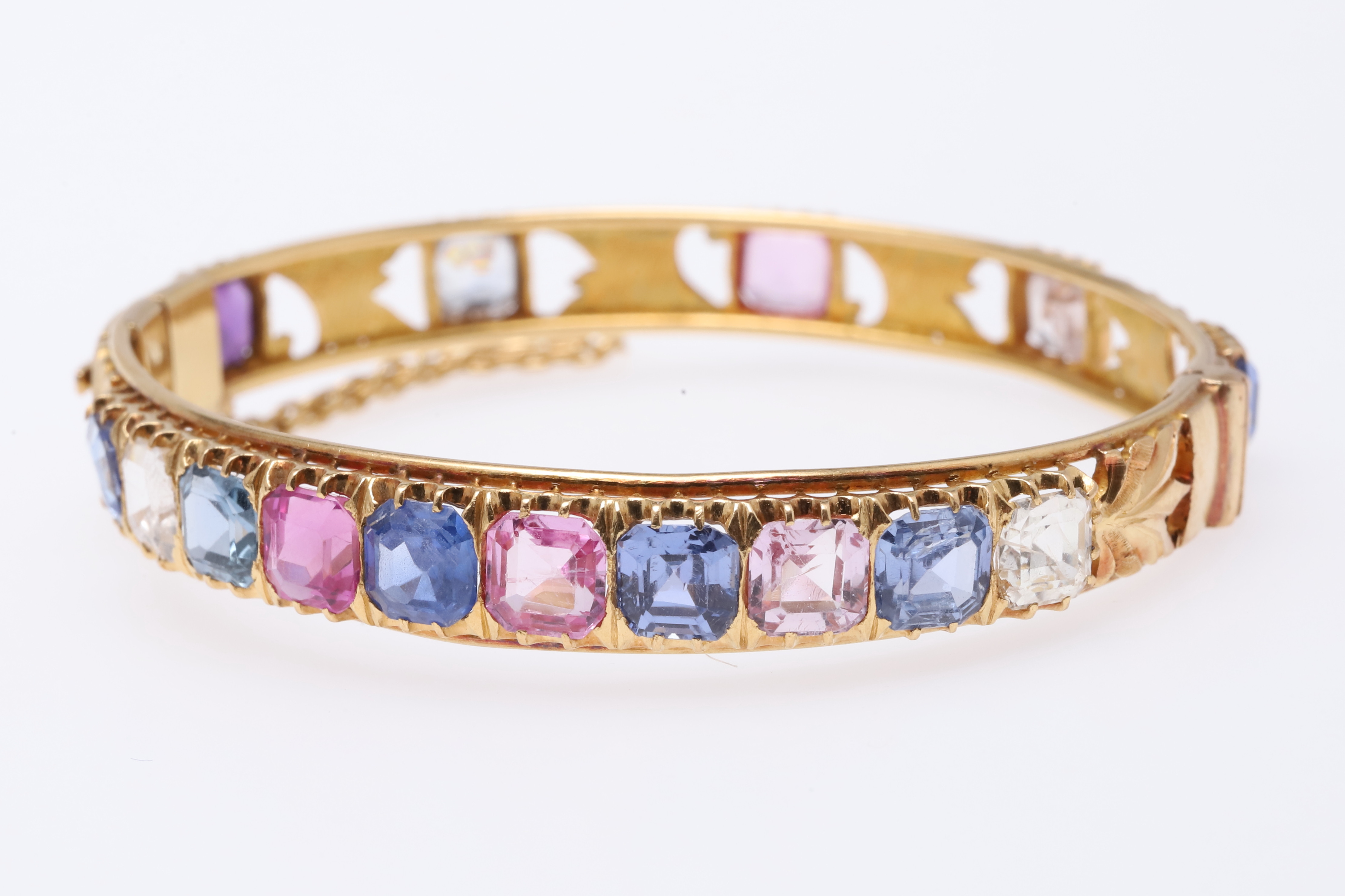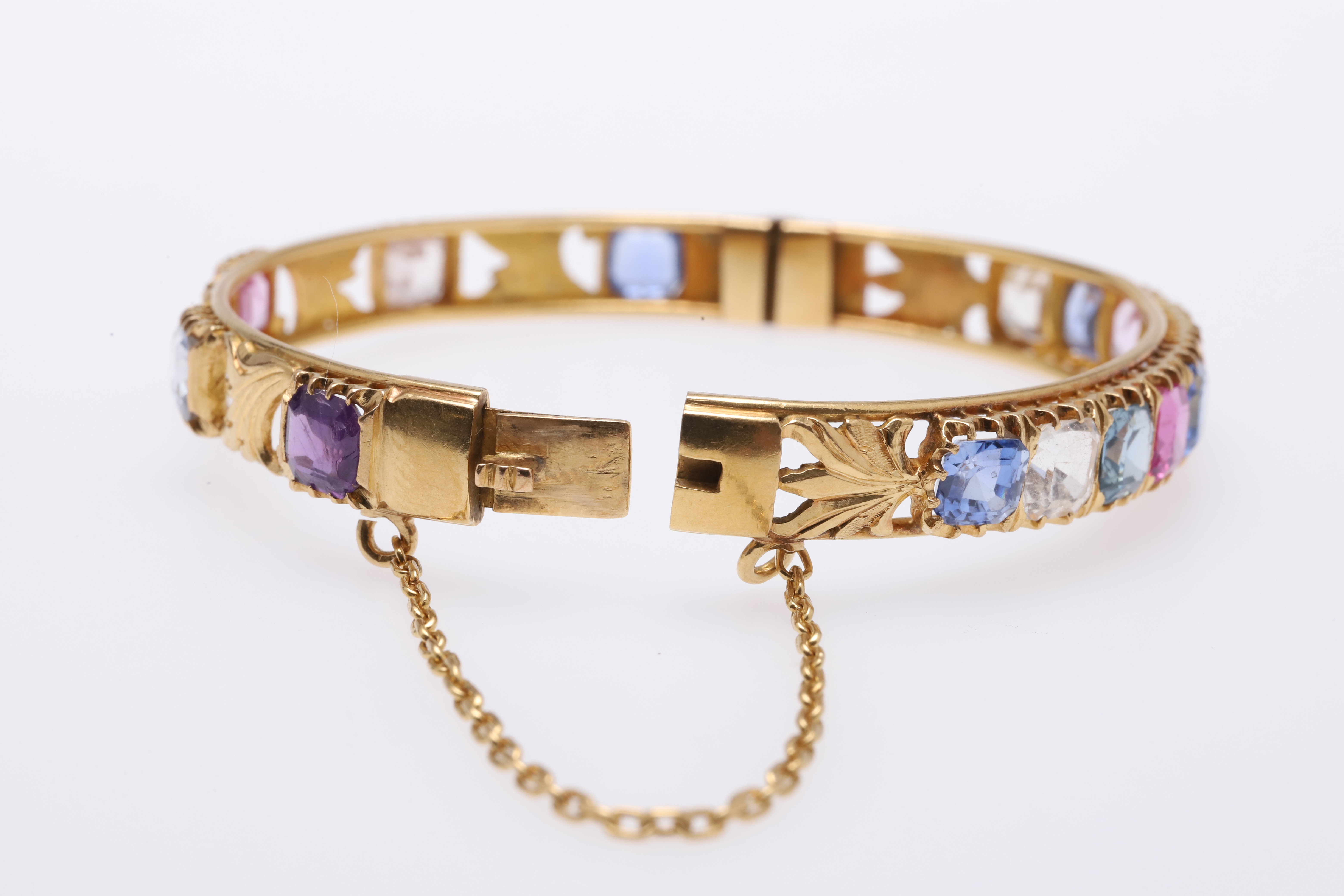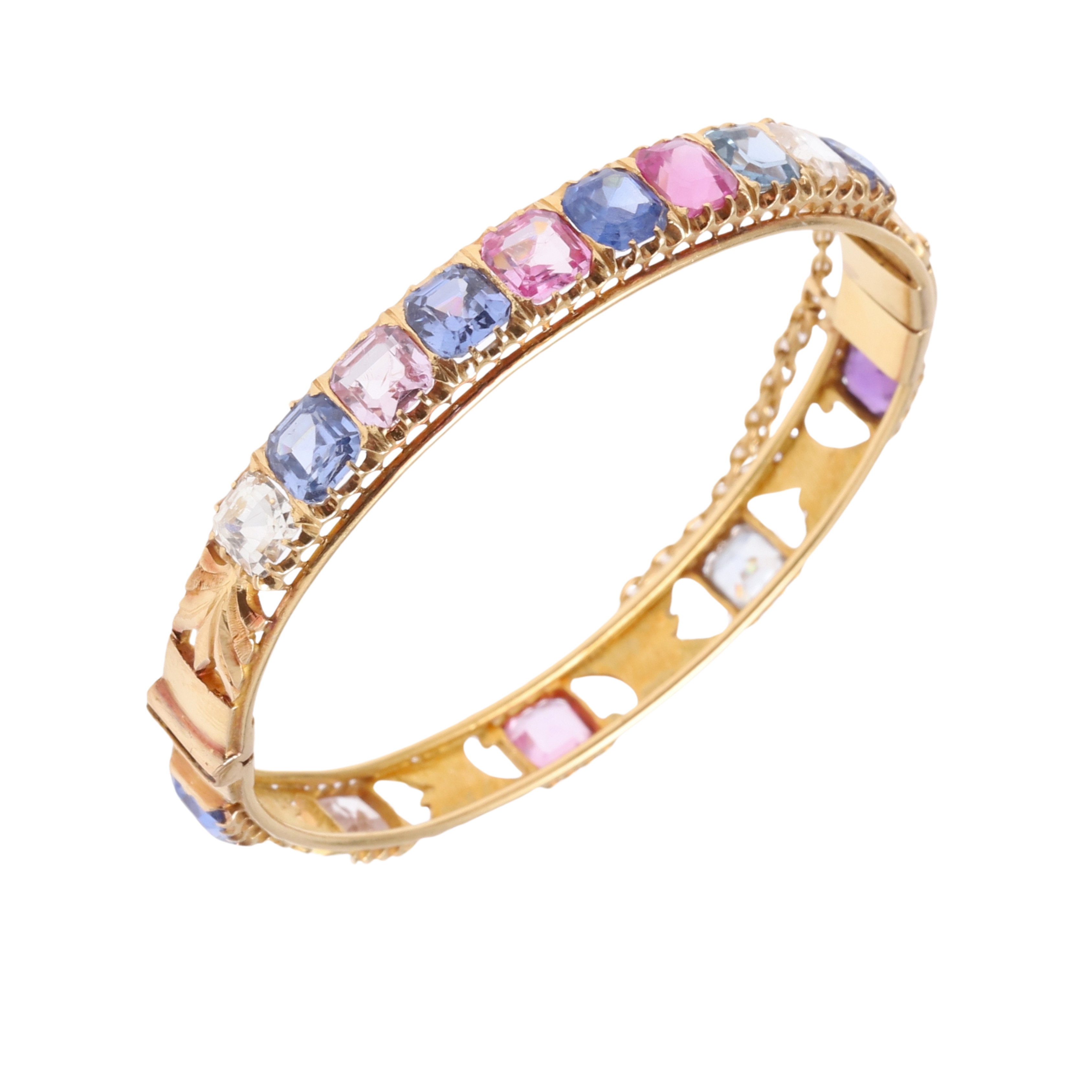 769. 3629744. ARMRING MED GÅNGJÄRN I GULD OCH SAFIR.