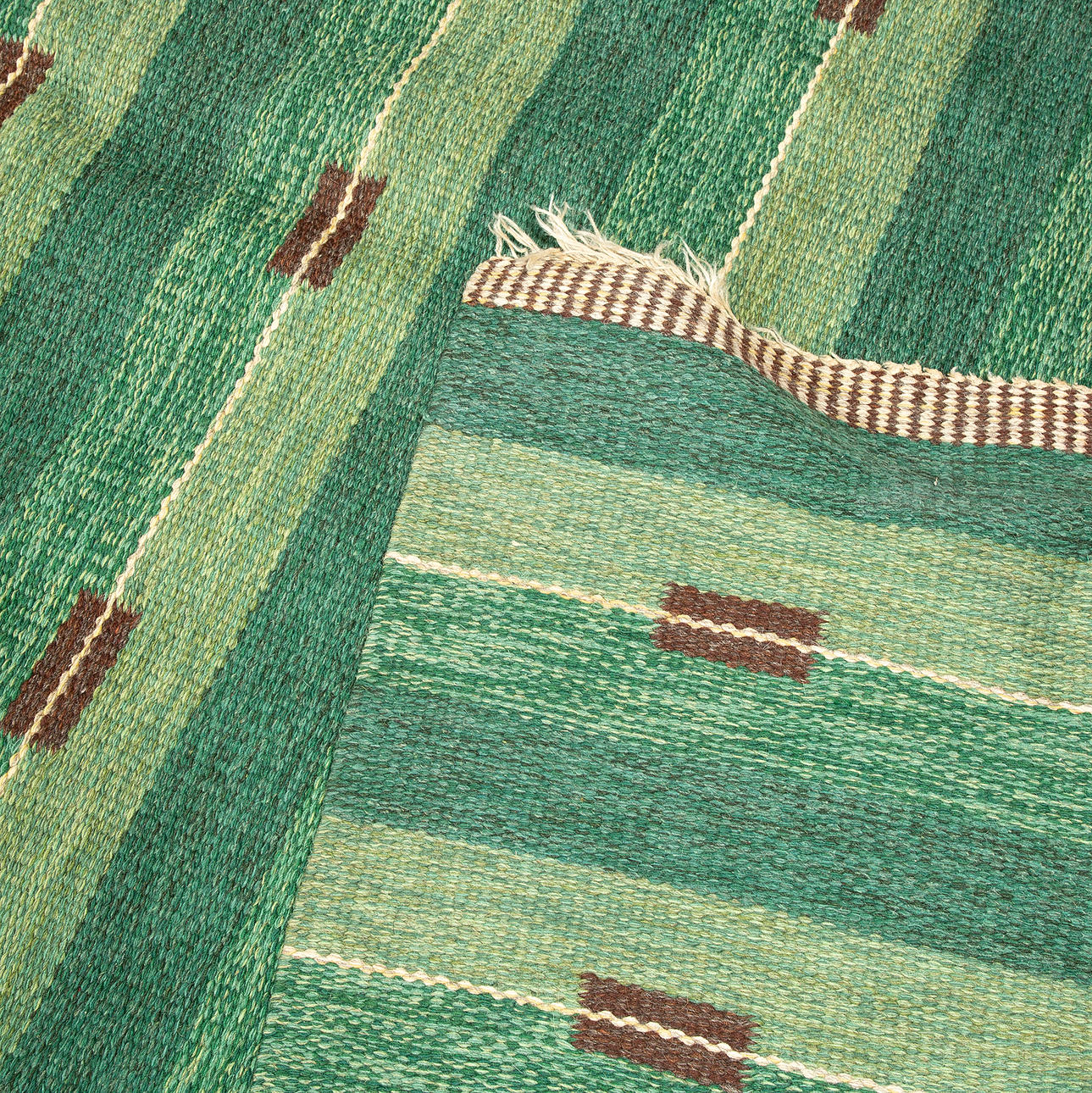 Bruksslitage och slitna fransar, ställvis hårdare.