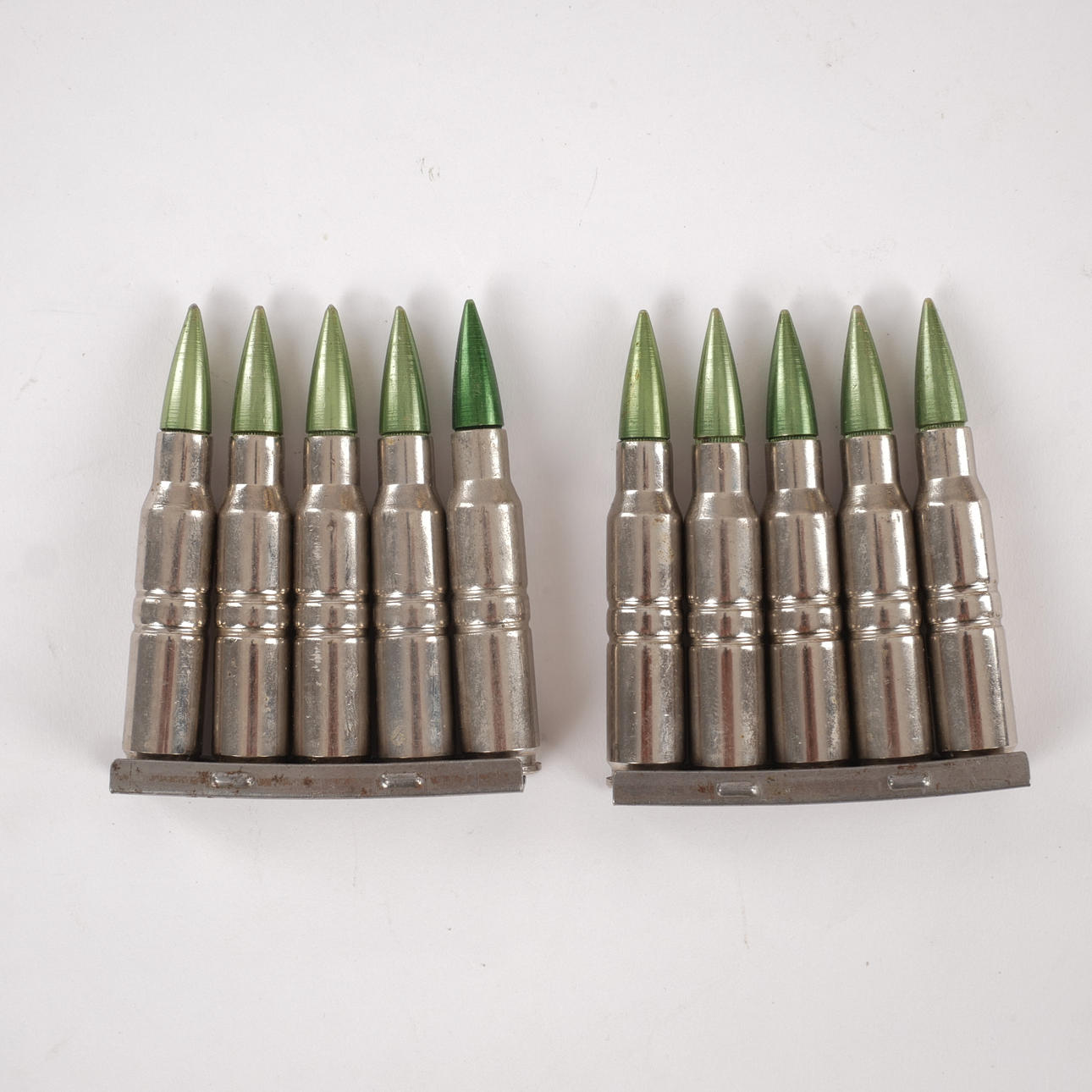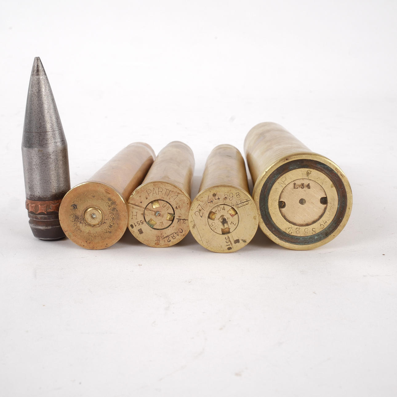 3 tomhylsor samt tomhylsa med spets, 2 magasin laddblind patroner med 10 skott. Höjd 7,5-21 cm.