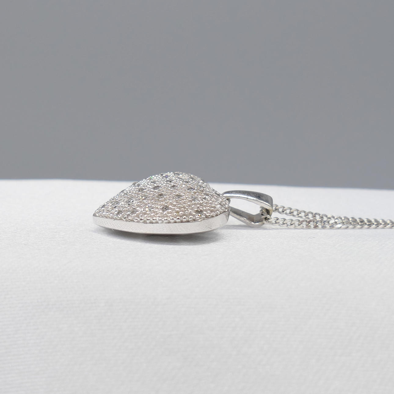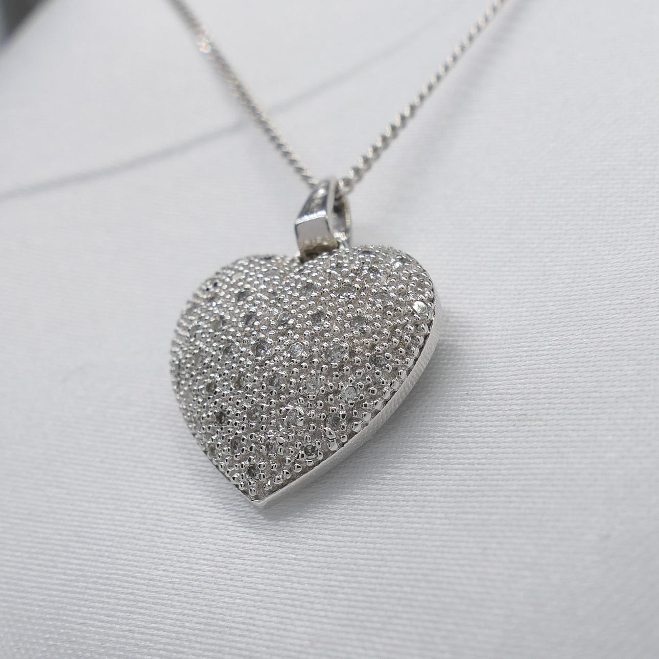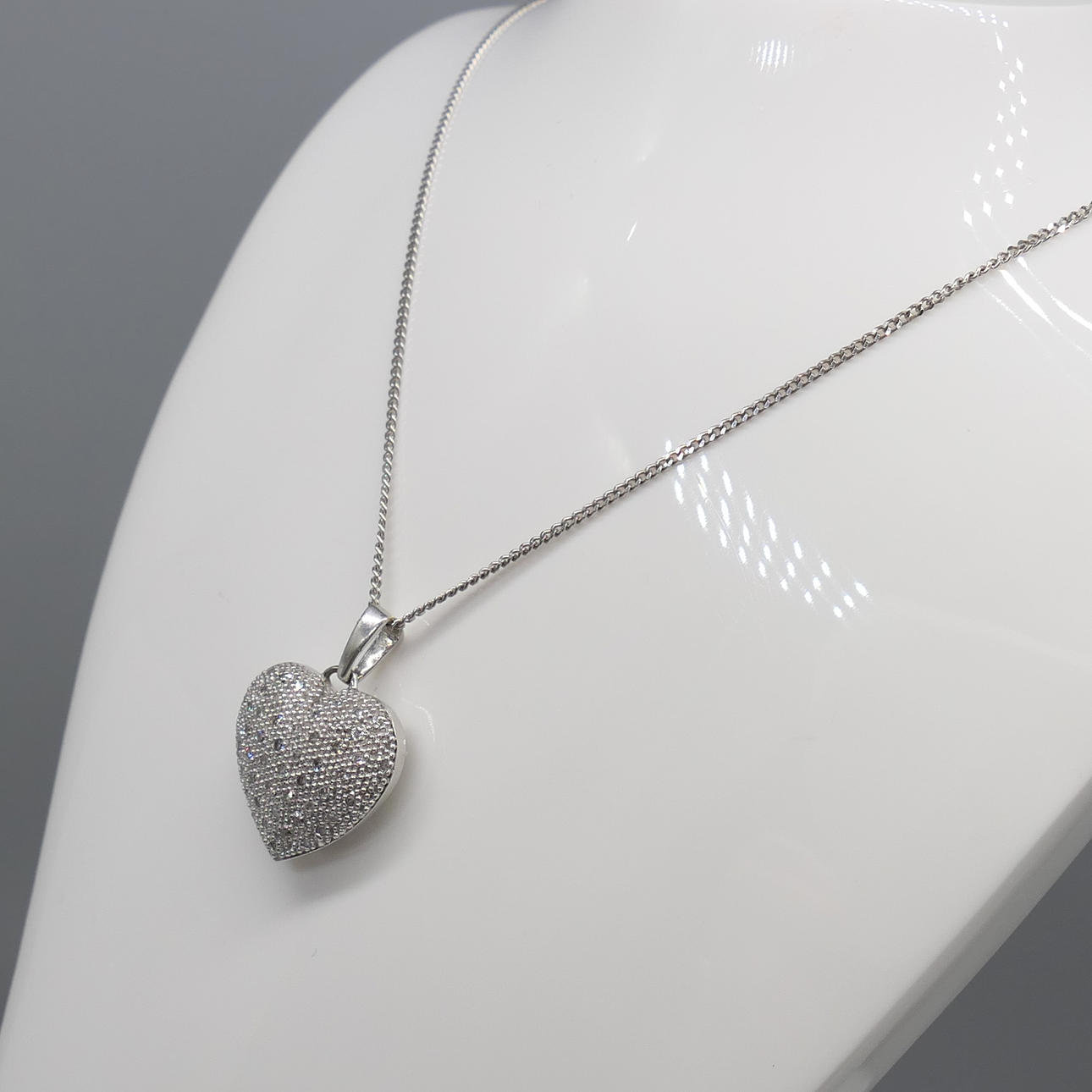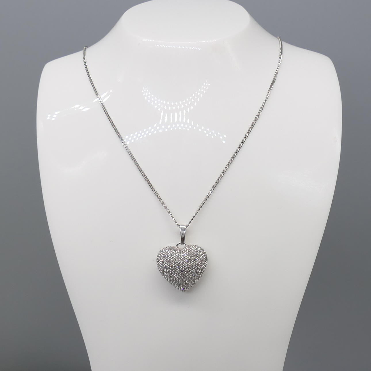 Ett elegant vitguld hjärthalsband med 0,15 karat diamanter, med presentask.