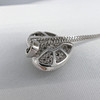 Det hjärtformade hänget är infatterat med flera rundslipade naturliga diamanter på totalt 0,15 ct. Diamanternas ungefärliga färg och klarhet är I-J, bra SI.