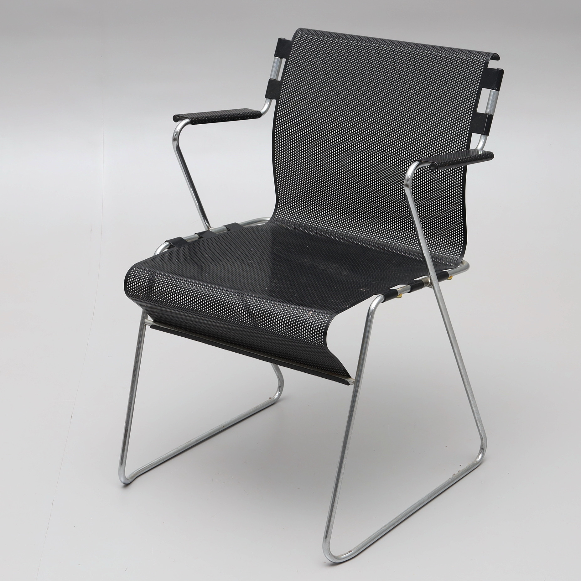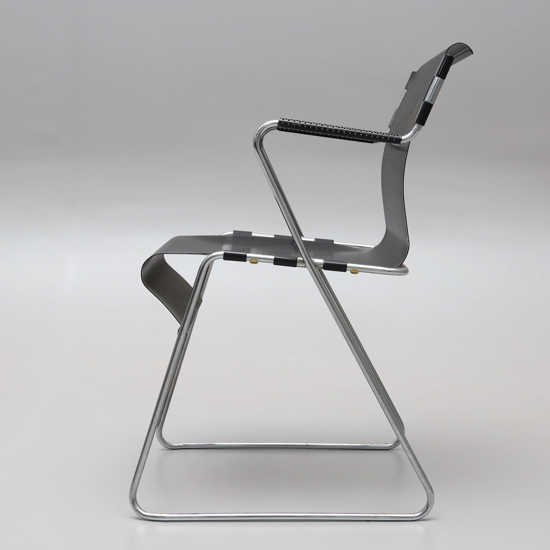 3634331. STOL, stål, perforerad sits, 1980-tal.