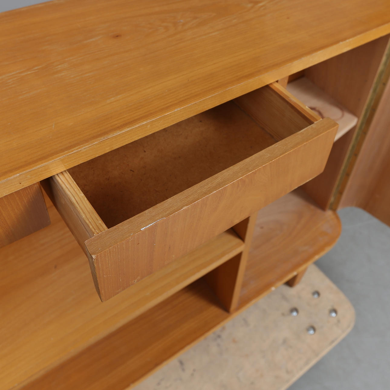 Skåpsdel. Längd ca 140 cm. Bredd ca 27 cm. Höjd ca 81 cm.